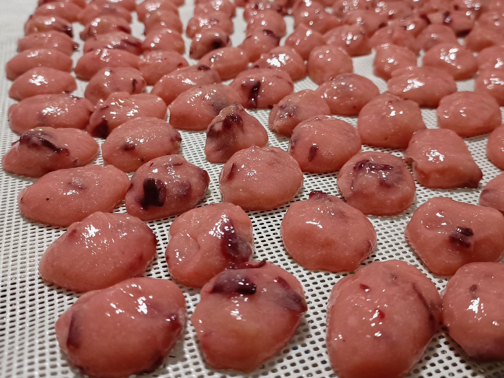 5. 塑型、晾晒无额外添加的酸枣泥质地粘稠,是无法做出复杂造型的。我们将酸枣泥搅拌均匀后,手工挤出简单的圆形,便放至空旷的户外进行晾晒。