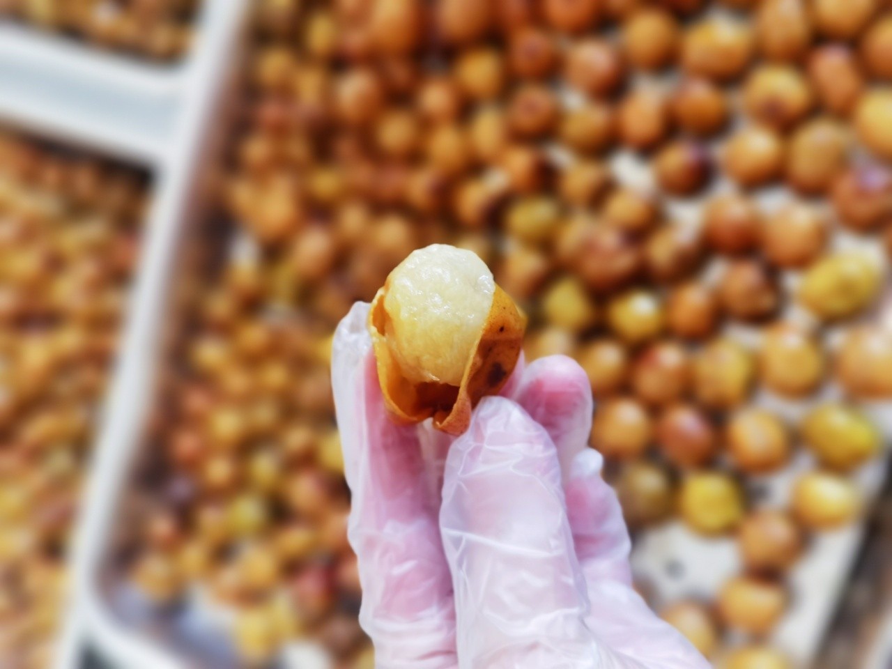 3. 剥皮冷却后开始剥皮,目前剥皮须全程手工,这也是制作酸枣最费时费力的一步