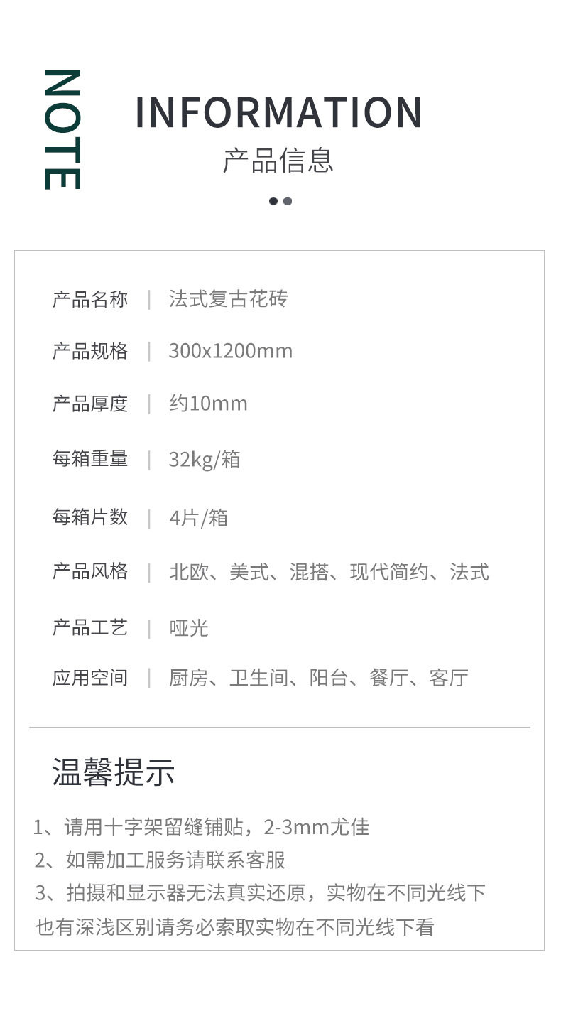 卫生间布霜白厨房墙砖地板砖300x1200法式瓷砖海基花砖复古阳台 商品图2