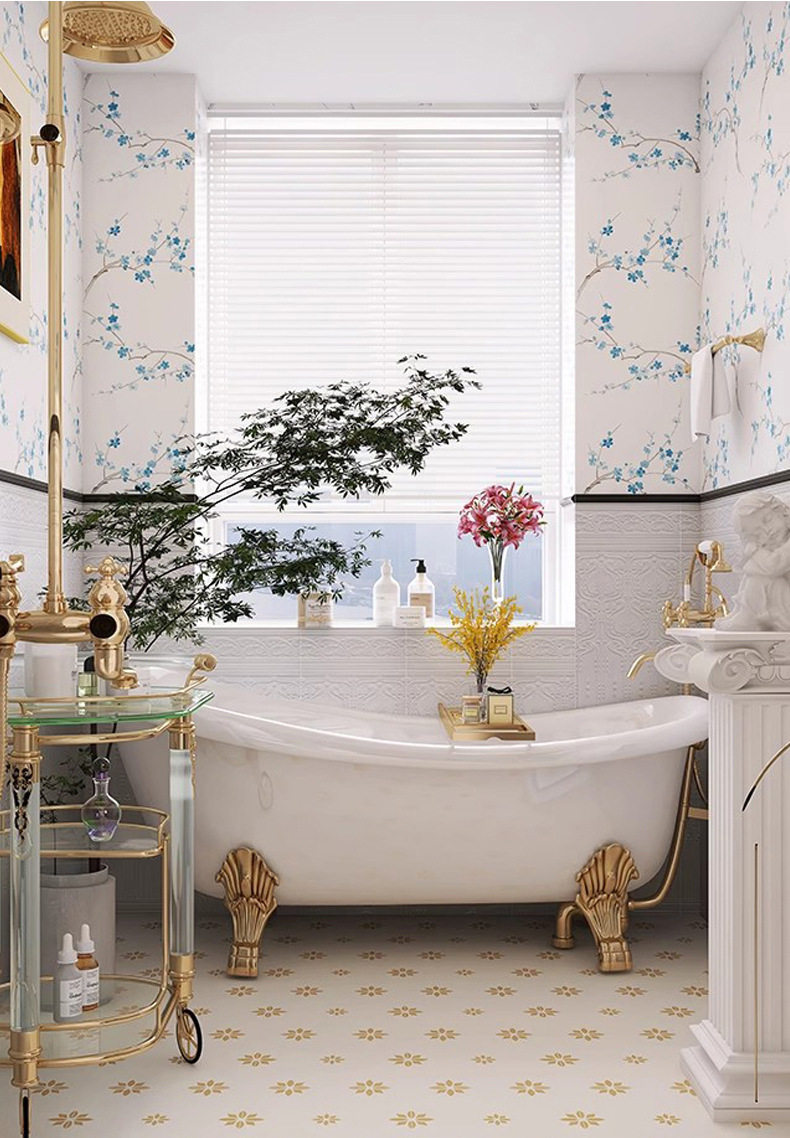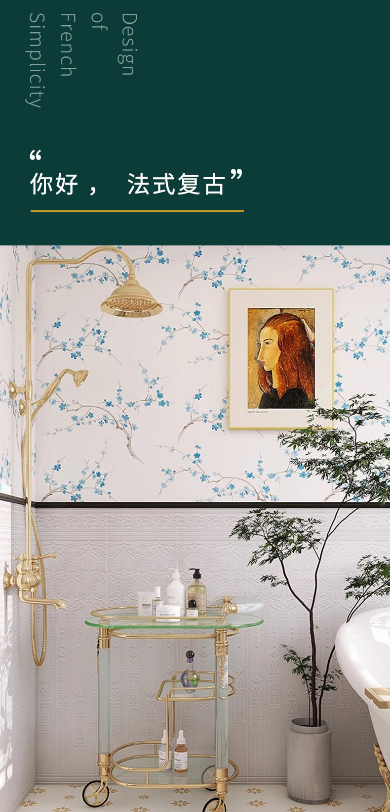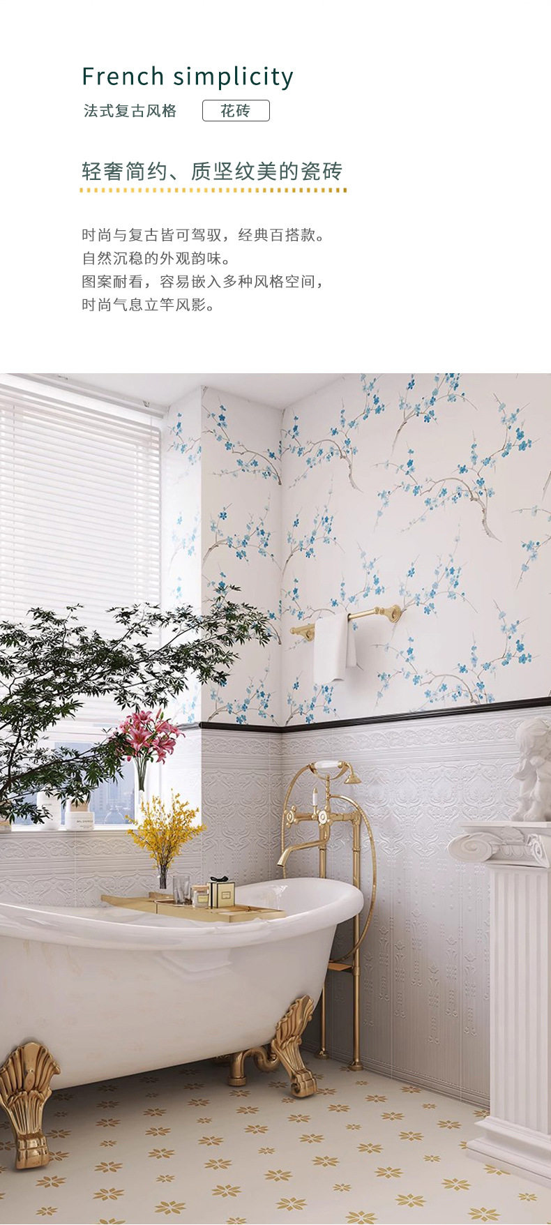 卫生间布霜白厨房墙砖地板砖300x1200法式瓷砖海基花砖复古阳台