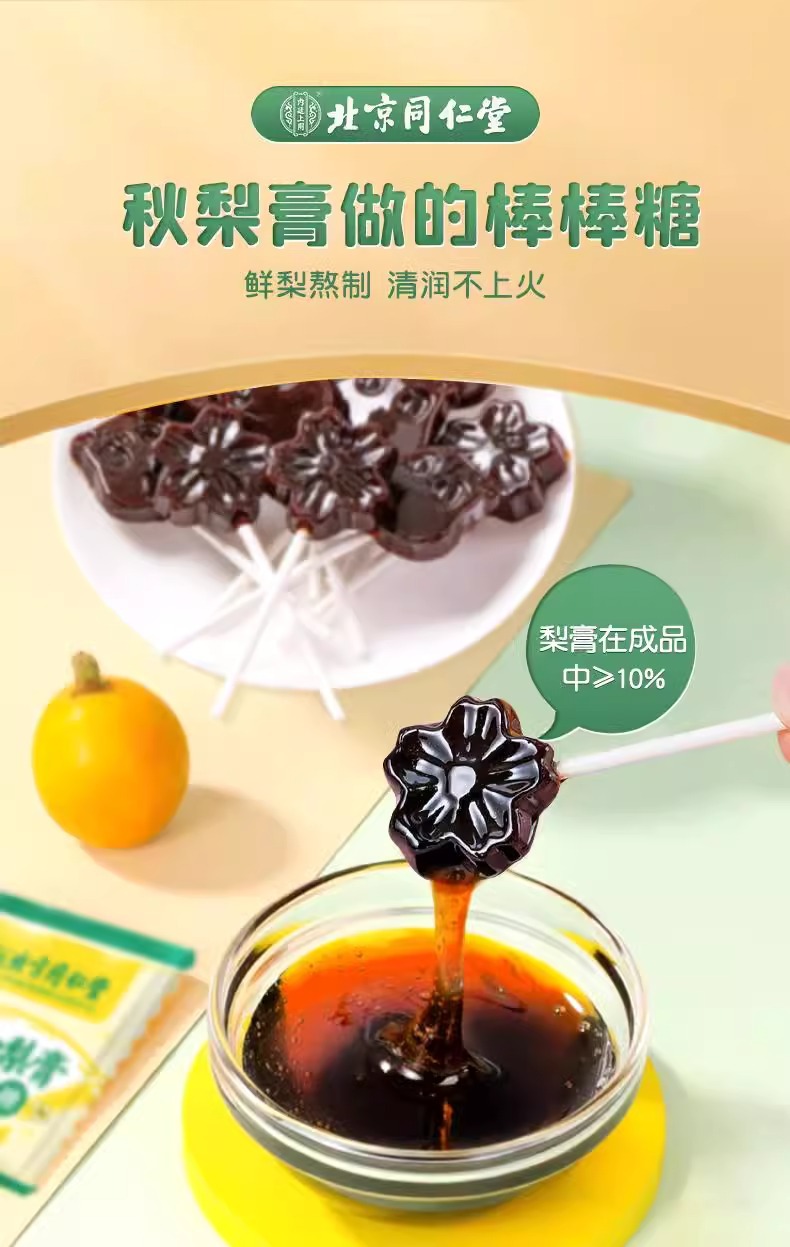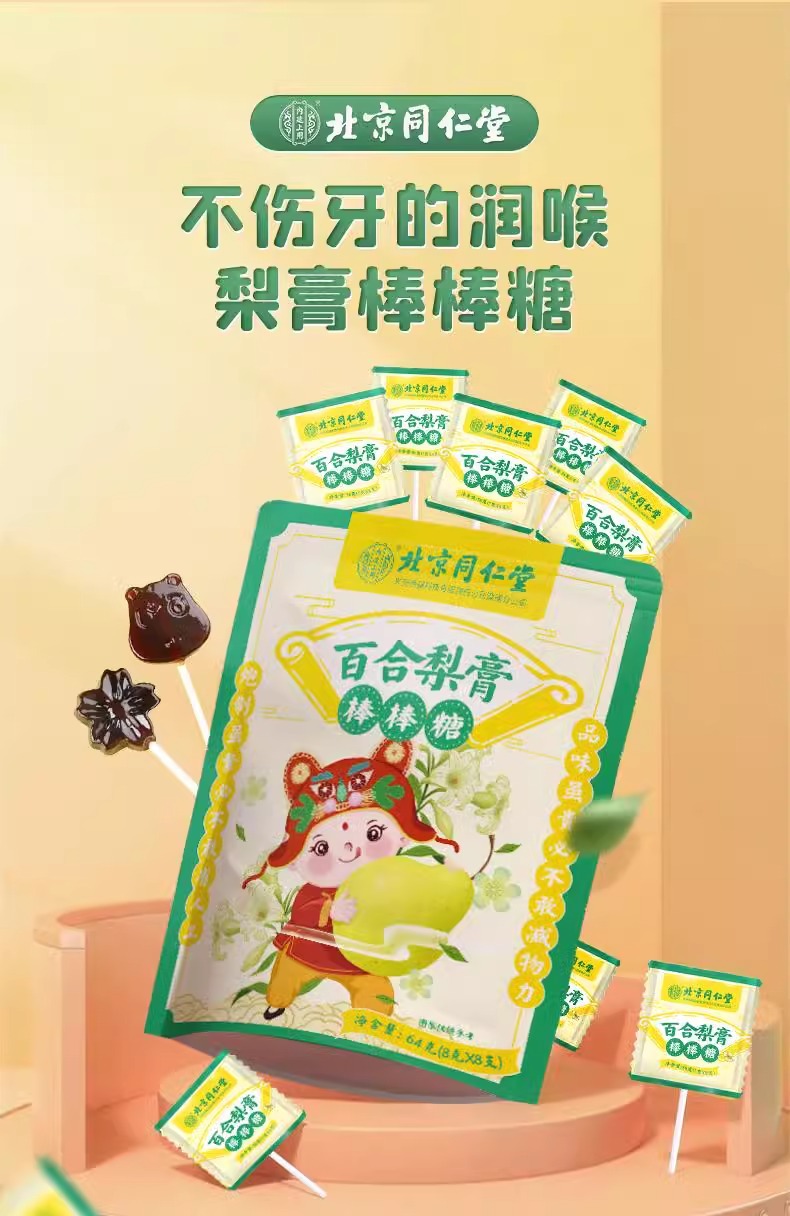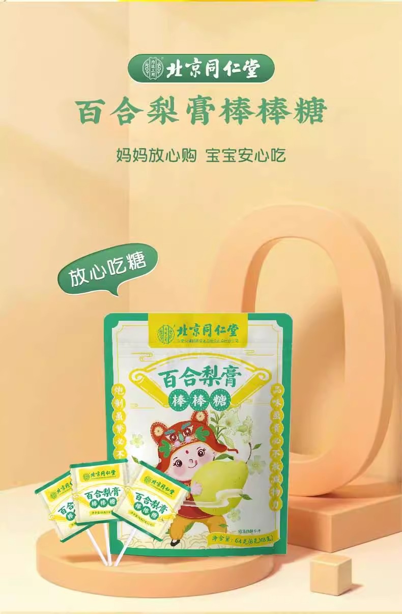 【买二送一❗百合梨膏棒棒糖】北京同仁堂梨膏棒棒糖,不伤牙的润喉,0香精0防腐剂0色素,果秋梨膏无添加儿童零食雪梨膏零食解馋QQ