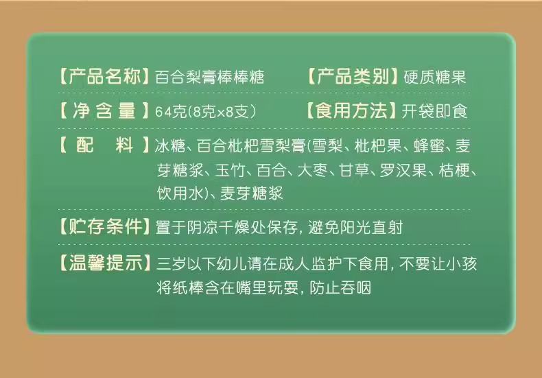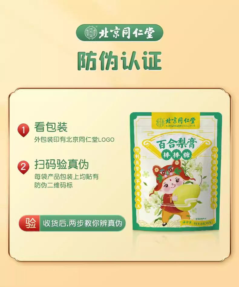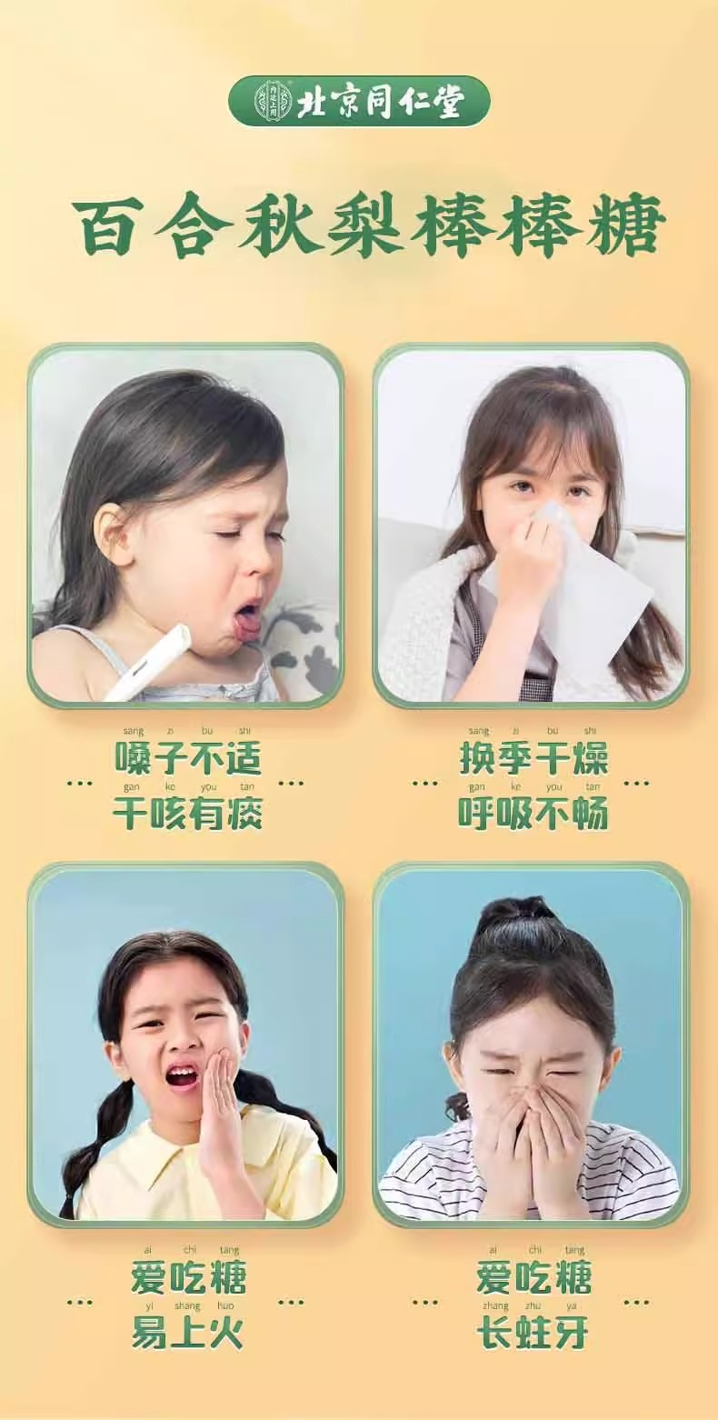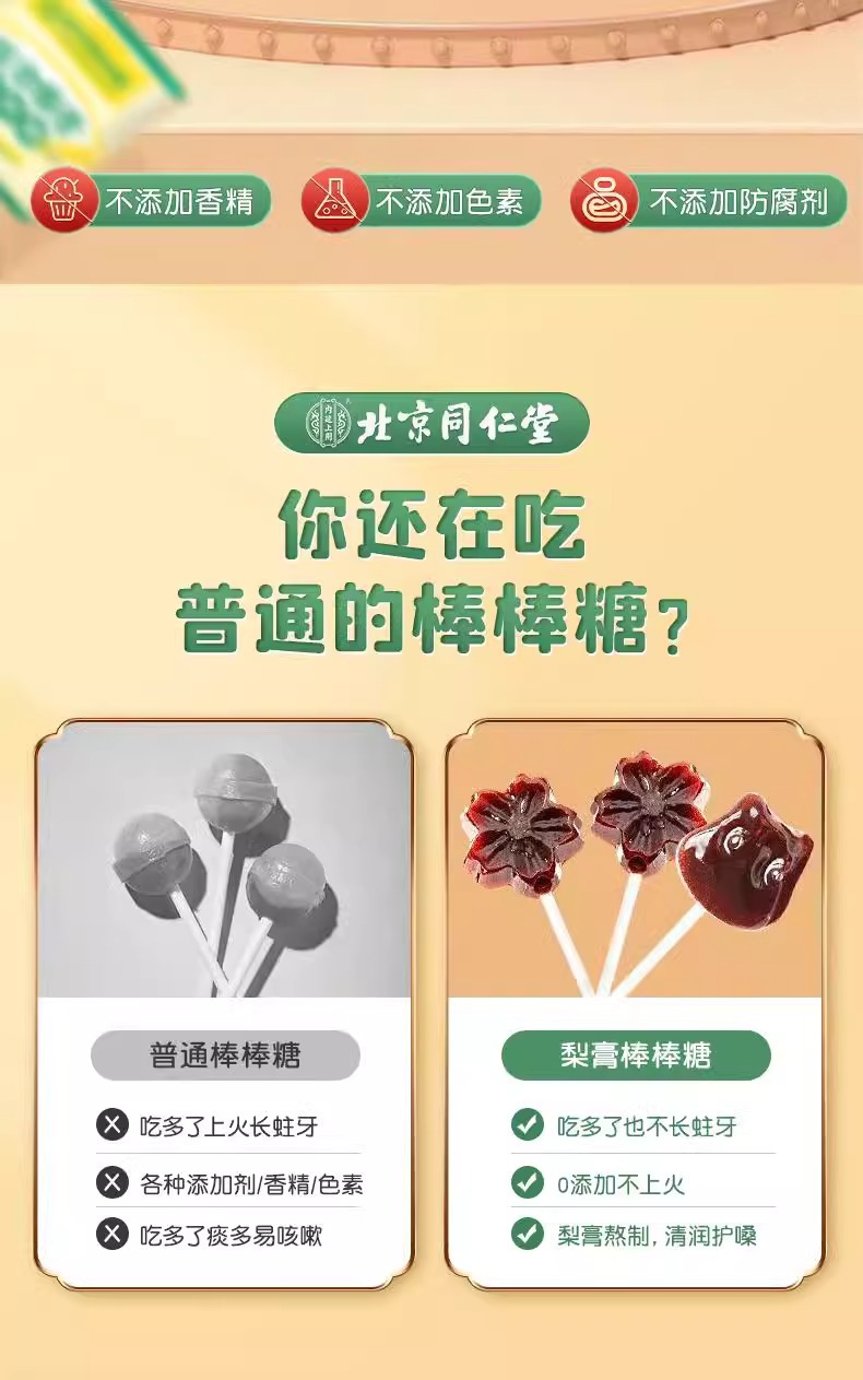 【买二送一❗百合梨膏棒棒糖】北京同仁堂梨膏棒棒糖,不伤牙的润喉,0香精0防腐剂0色素,果秋梨膏无添加儿童零食雪梨膏零食解馋QQ