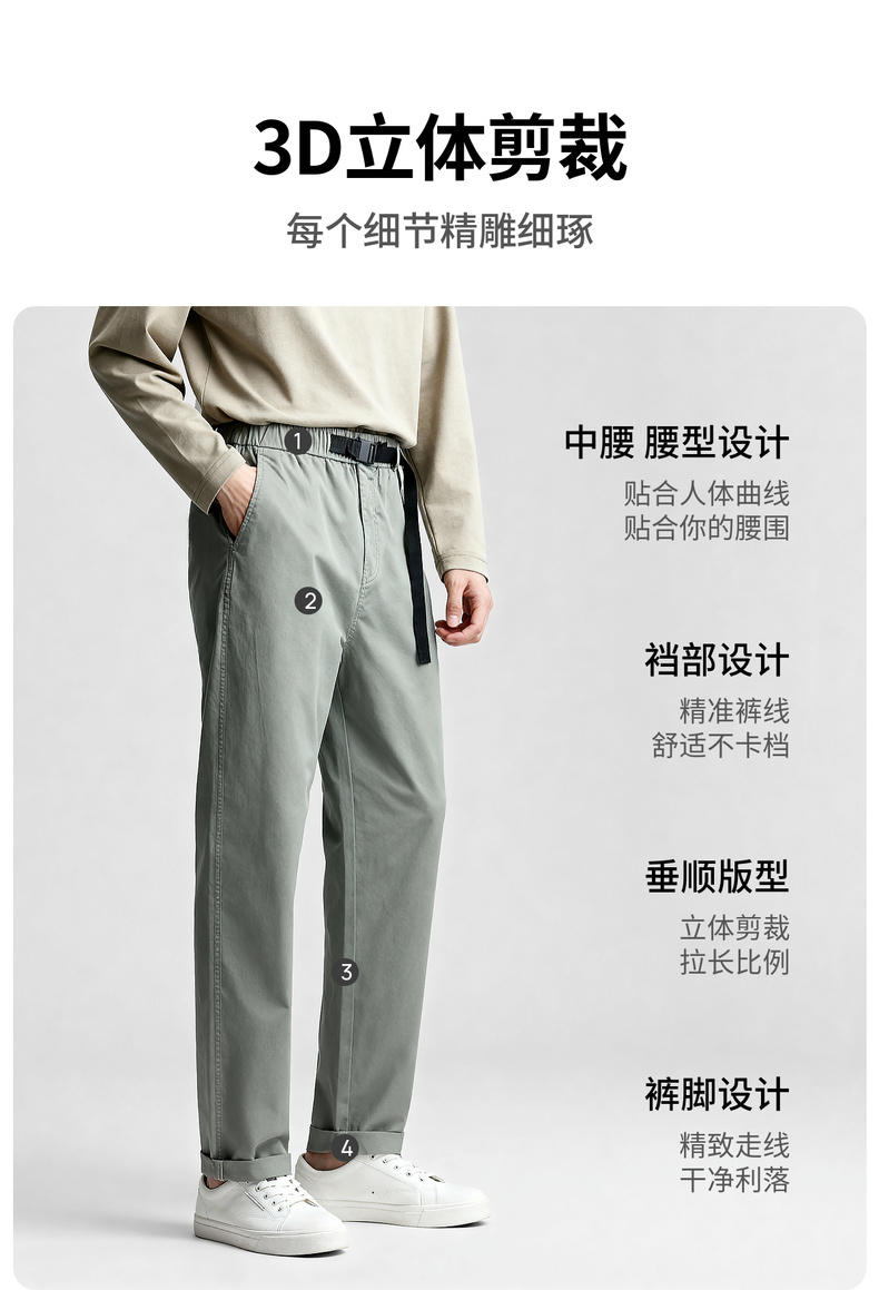 圣得西直筒休闲裤男2025新款纯色设计感弹力垂顺西裤子