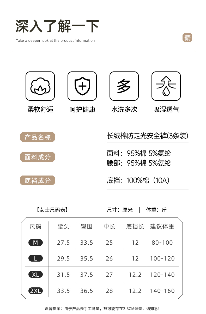 长绒棉防走光安全裤