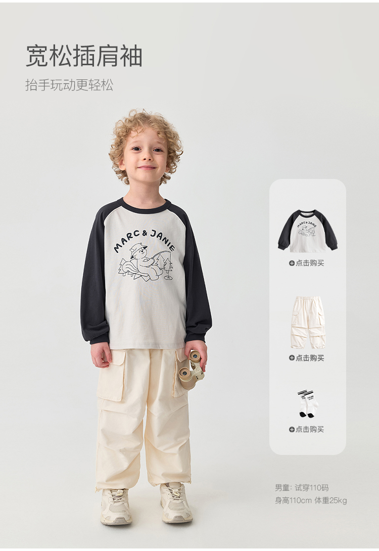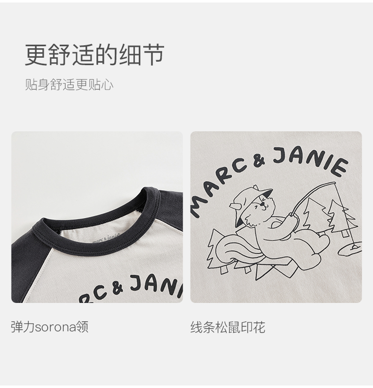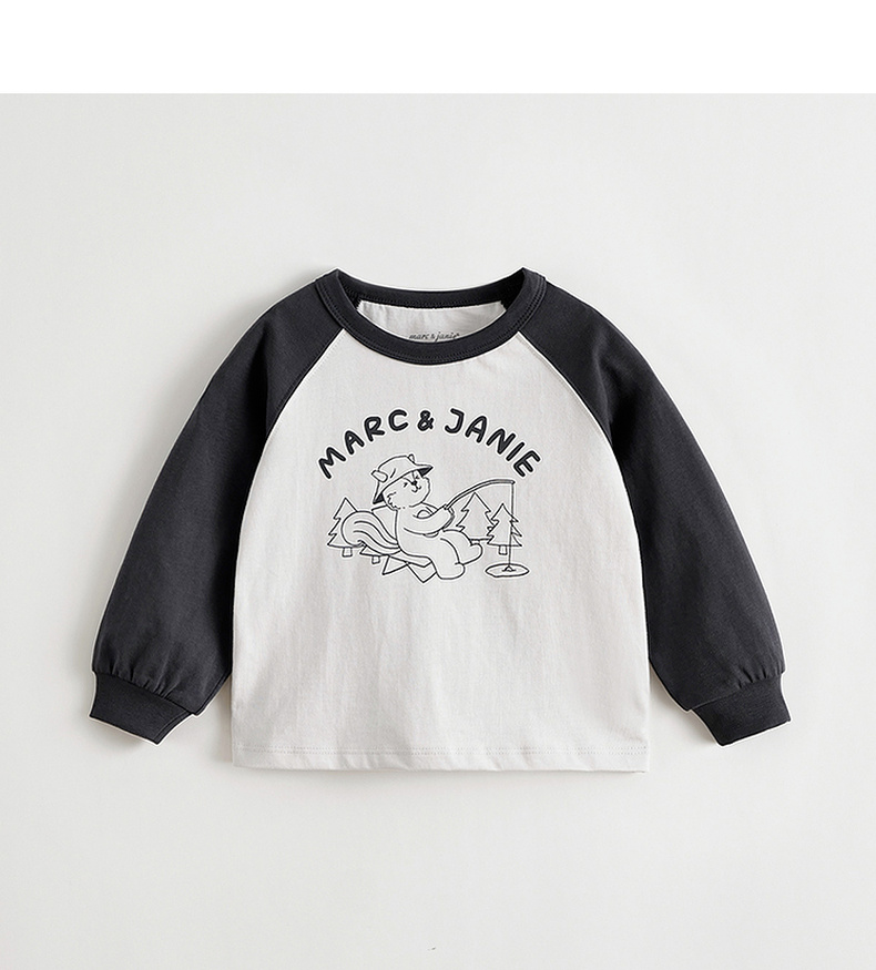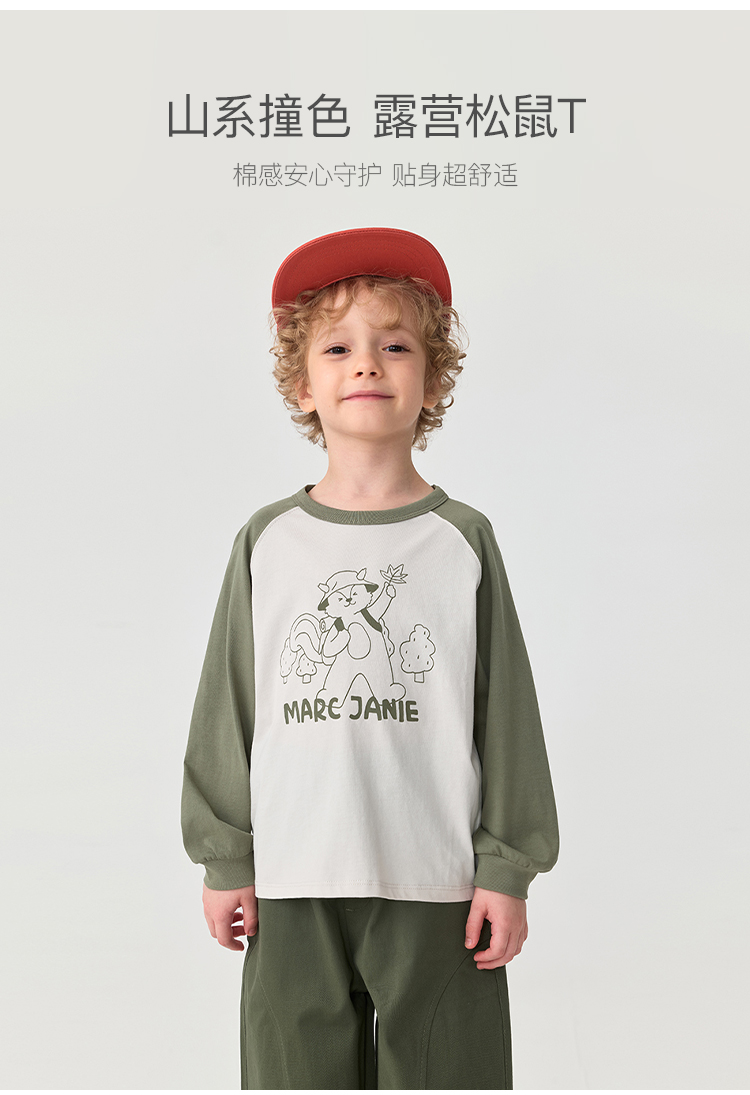 马克珍妮男童山系露营小松鼠长袖T恤 宝宝撞色上衣秋装新品551118