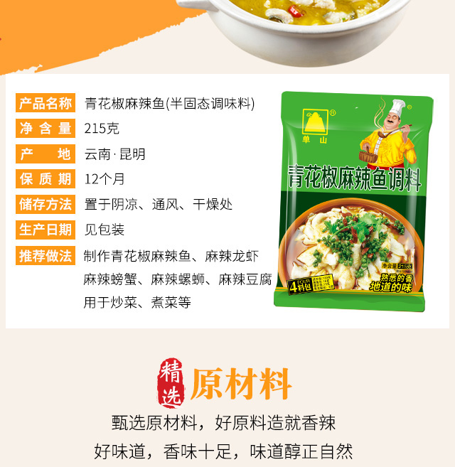 云南特产单山青花椒麻辣鱼料215g龙虾螃蟹海鲜调料胖子麻辣鱼佐料