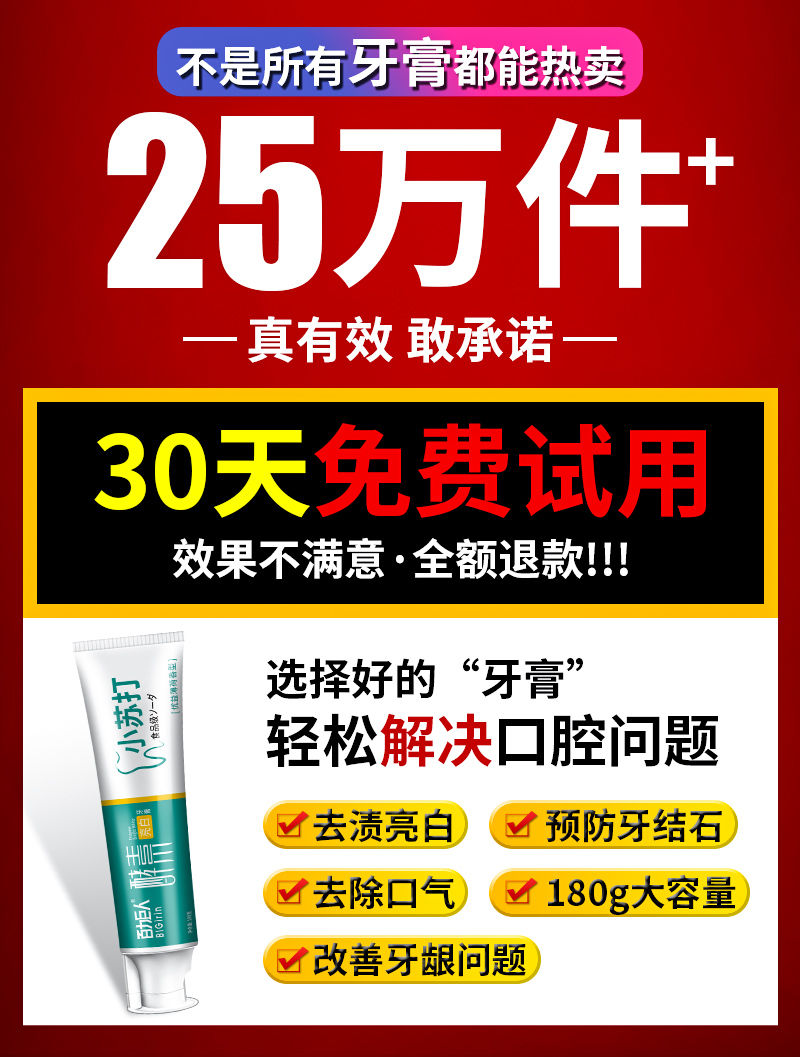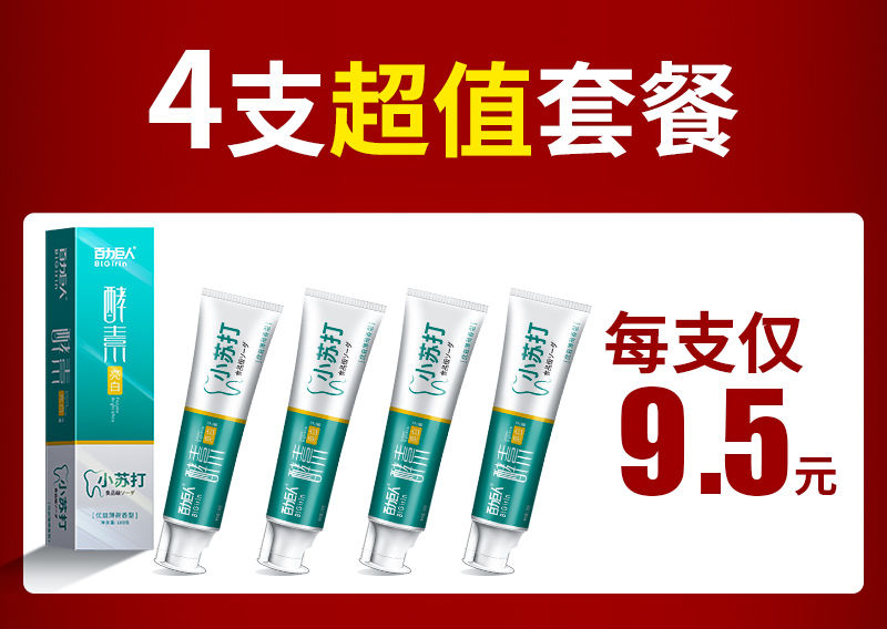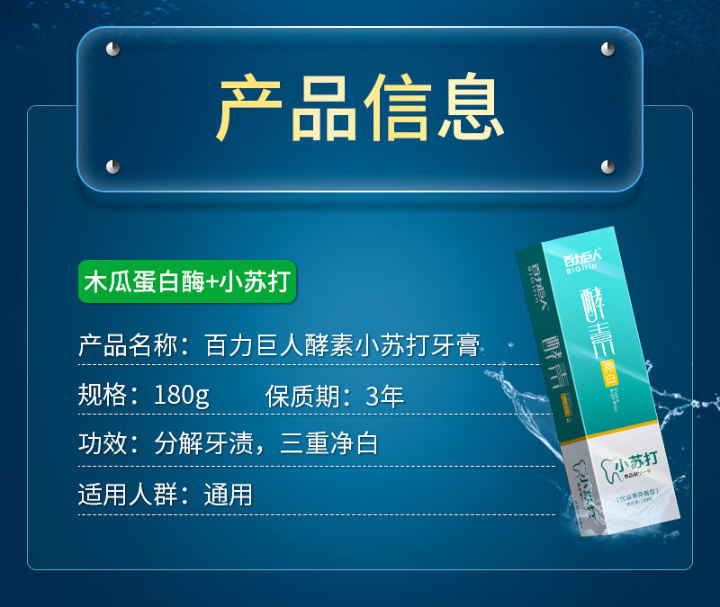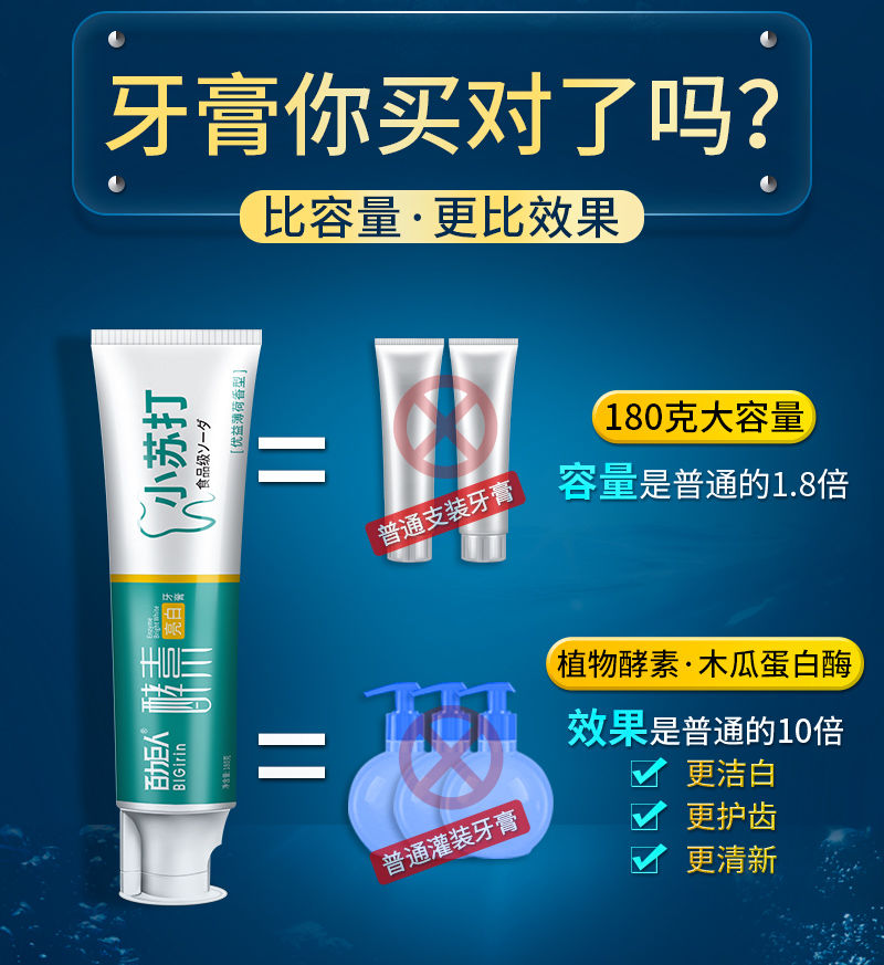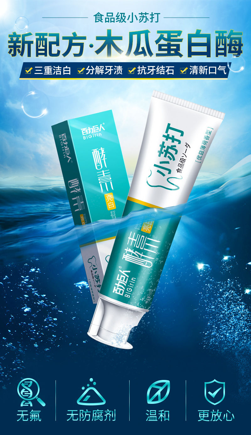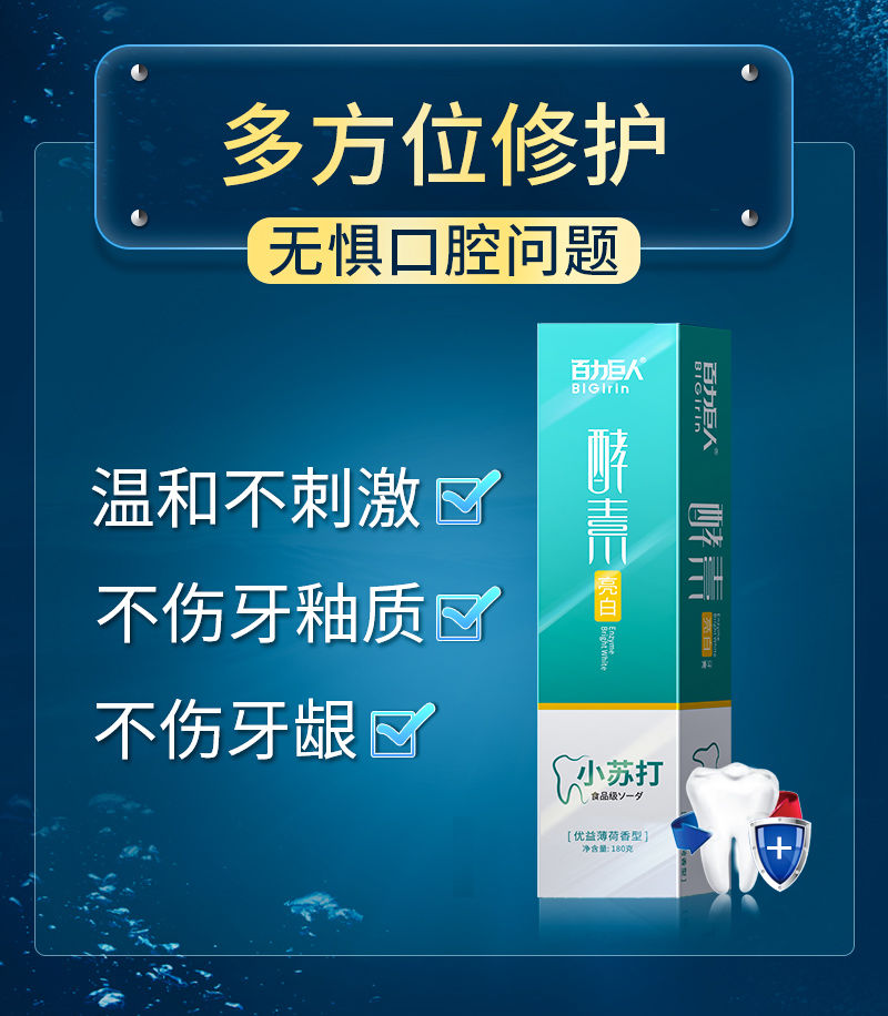 【蛋白酶】酵素小苏打美白牙膏去黑黄烟渍去口臭180g儿童成人牙膏