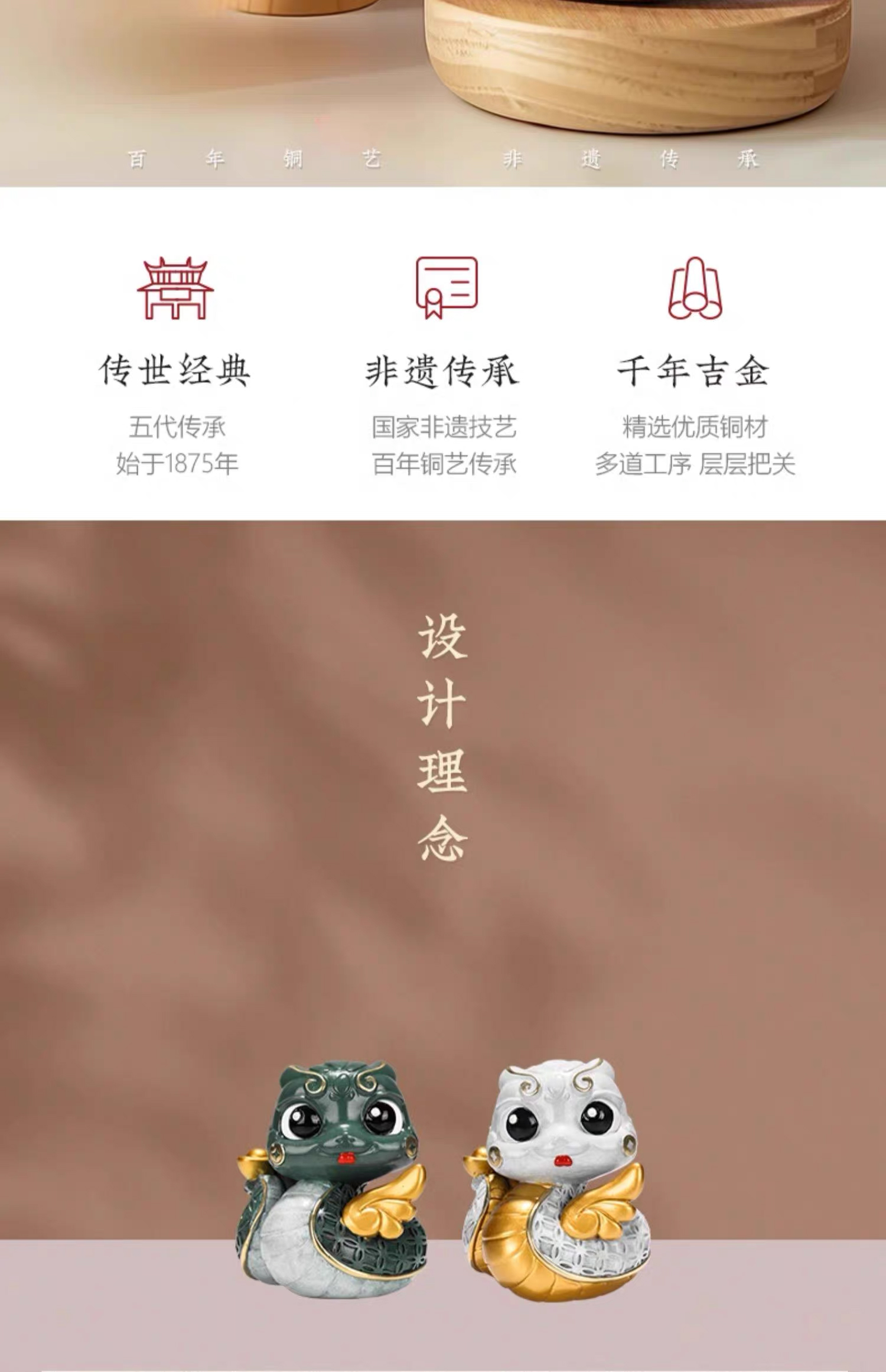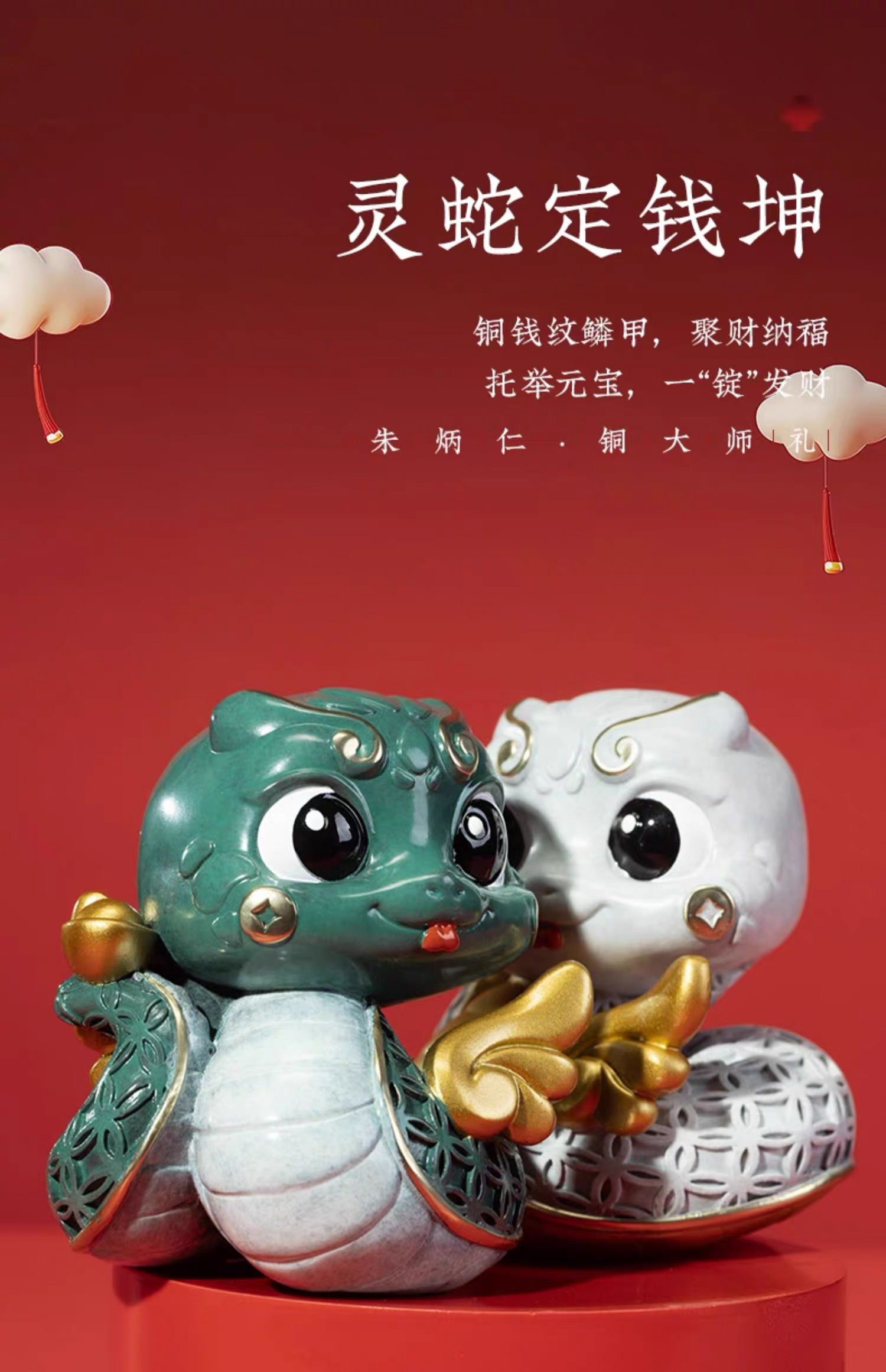 朱炳仁铜 灵蛇定乾坤蛇年生肖摆件生日礼物书桌办公桌面装饰新年