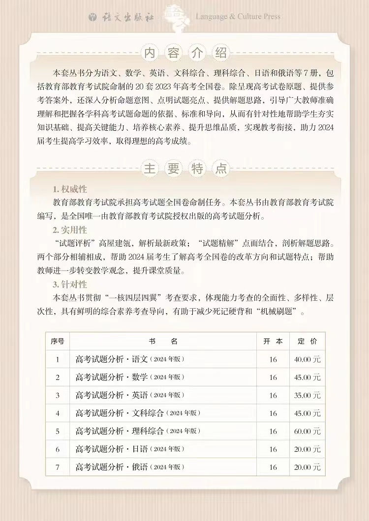语文 高考试题分析 教育部教育考试院 编 2024年版