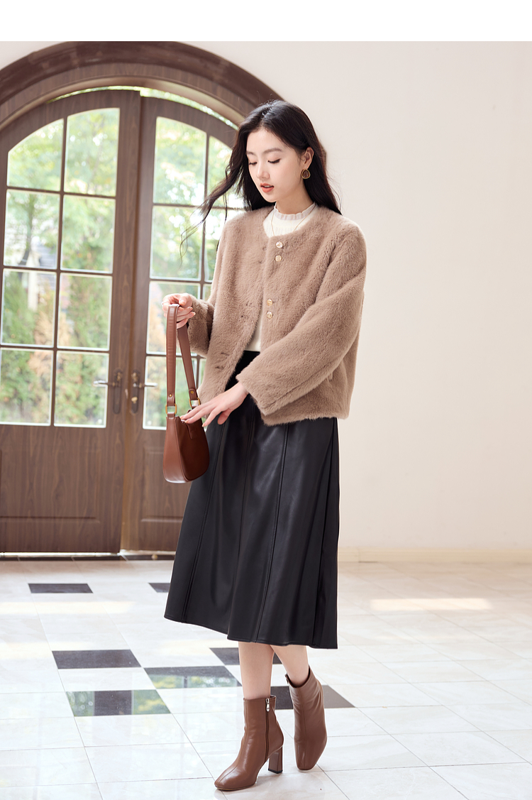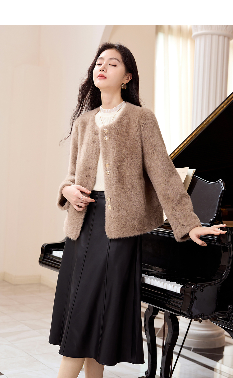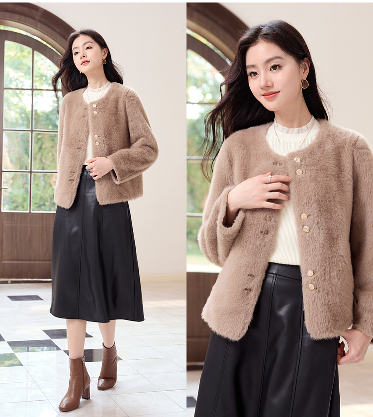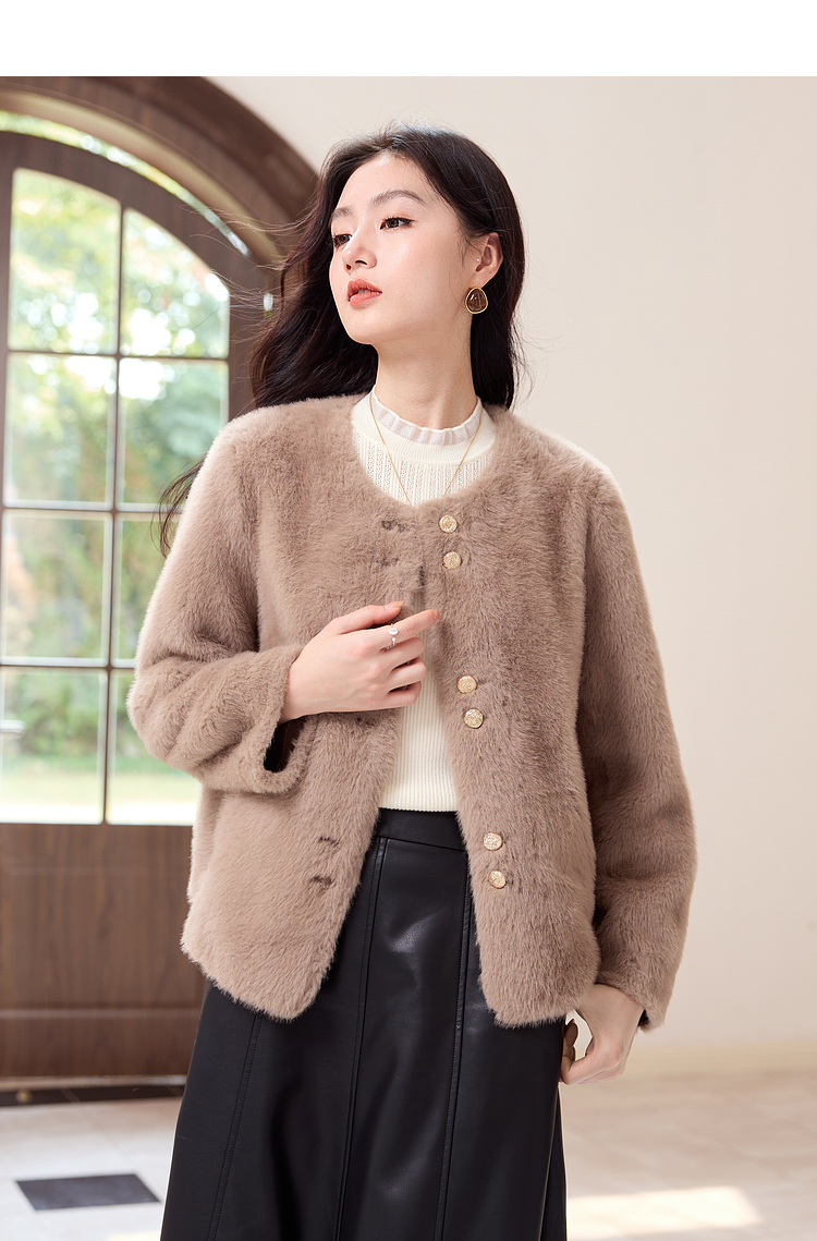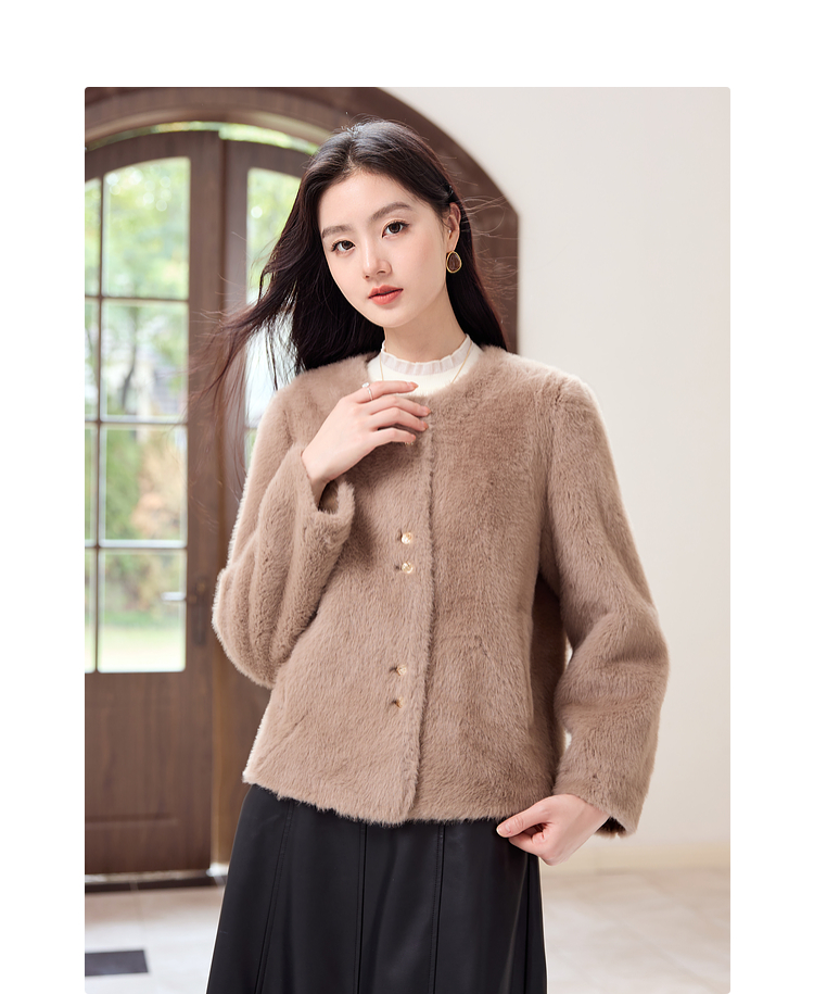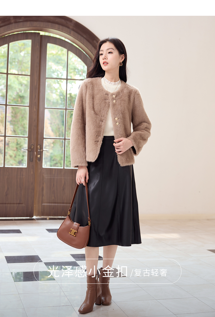 【年终特卖】熙世界气质名媛仿貂毛外套冬季2025新款宽松小香风保暖短款上衣