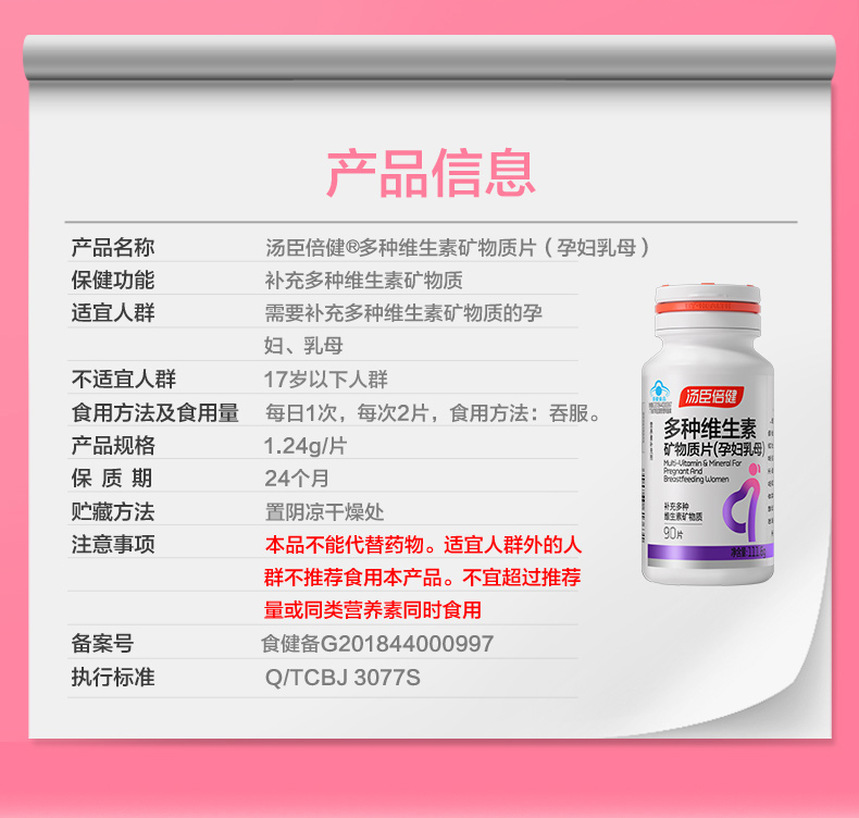 汤臣倍健 多种维生素矿物质片孕妇乳母型 90片/瓶