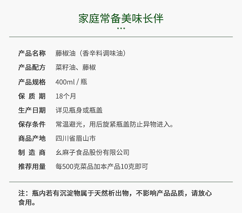 幺麻子 藤椒油400ml 花椒油家用麻椒油麻油麻辣烫特麻调料