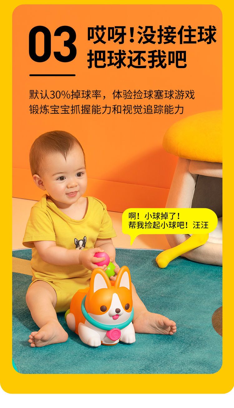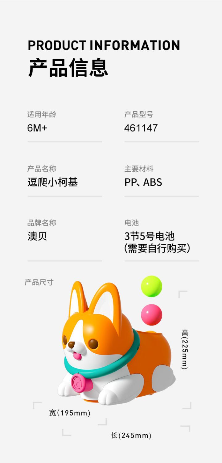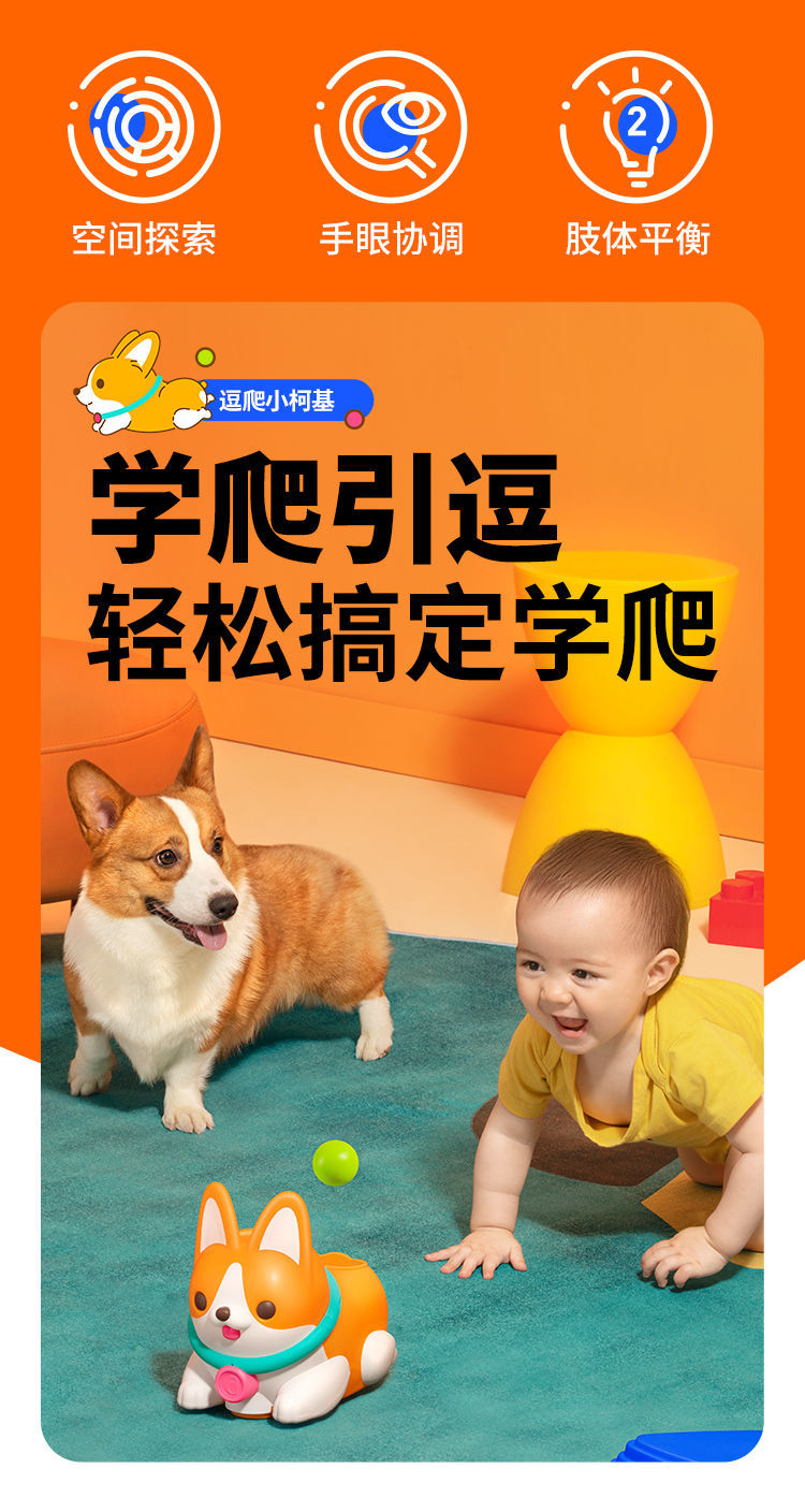 【澳贝】逗爬柯基婴儿学爬抛球狗爬行玩具儿童宝宝电动音乐学爬行神器