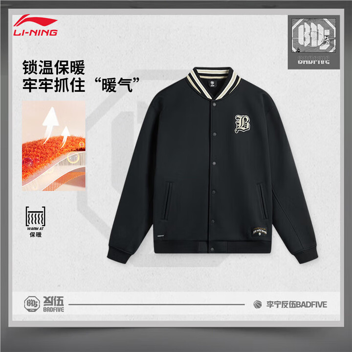 李宁男子2025加绒秋休闲连帽夹克外套AJDV003-4