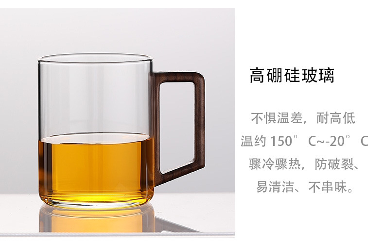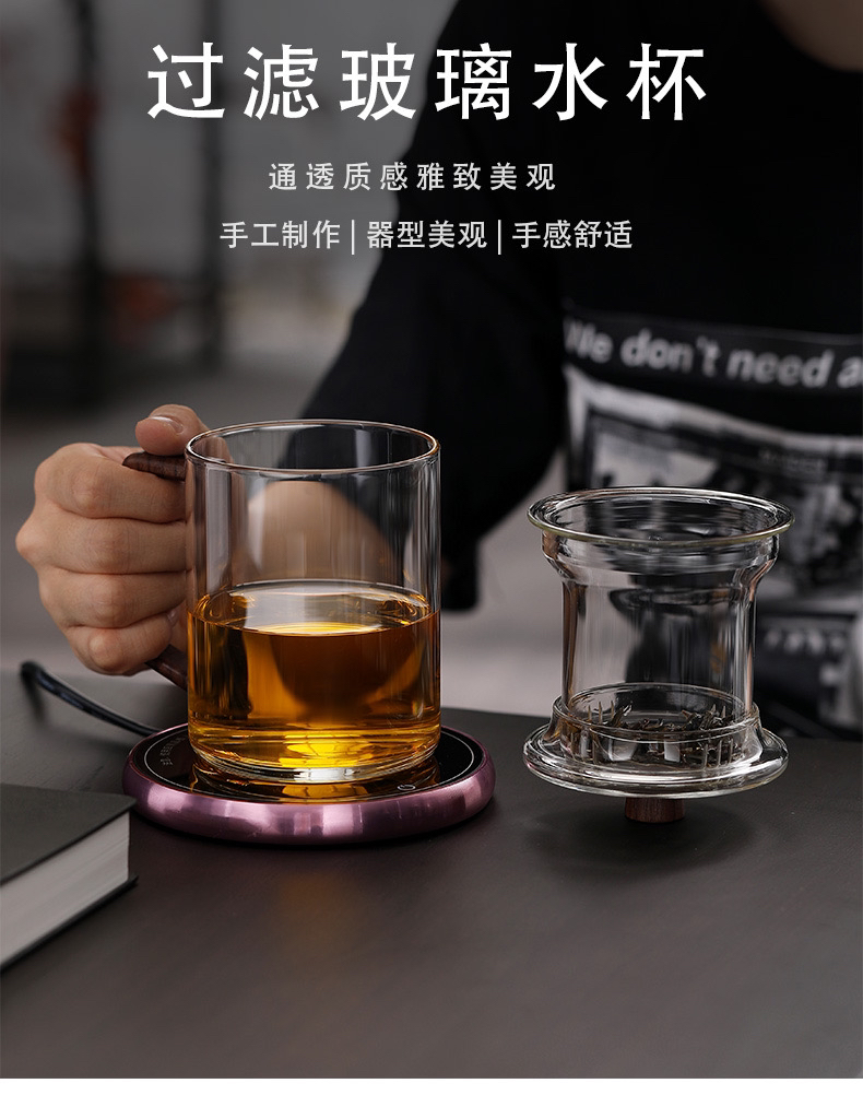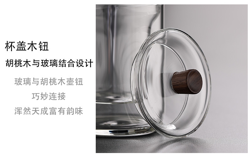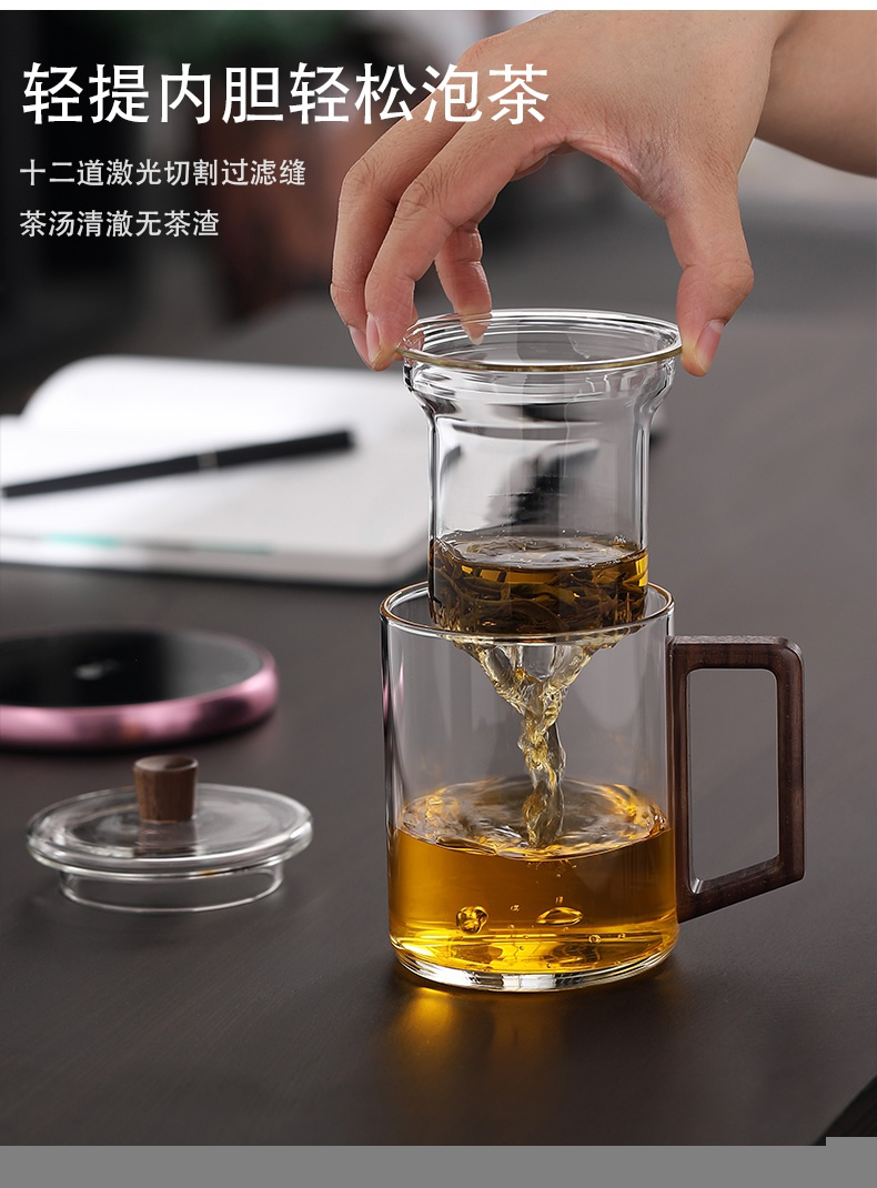 茶水分离玻璃花茶杯 个人专用杯子过滤 男女办公室木把泡茶杯带盖