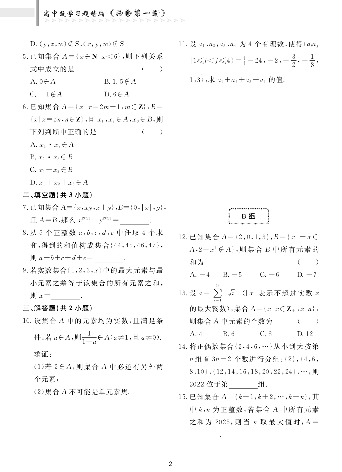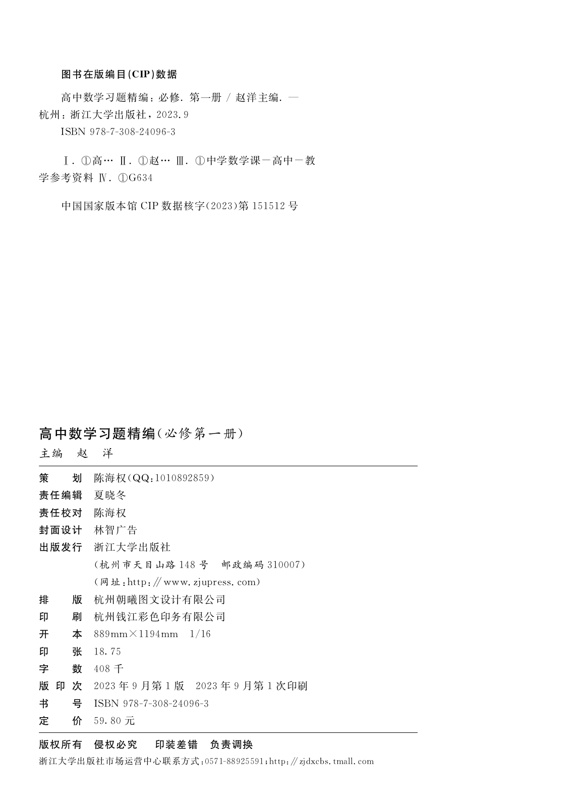 2023新高中数学习题精编必修选修一二三册 数学教材同步练习题必刷题重点高考复习资料教辅课前预习高考复习 浙江大学出版社