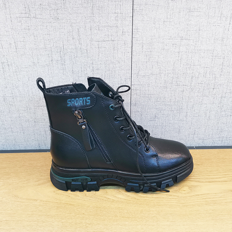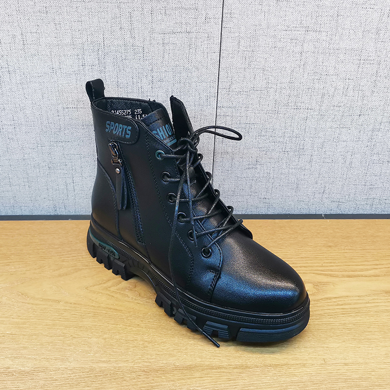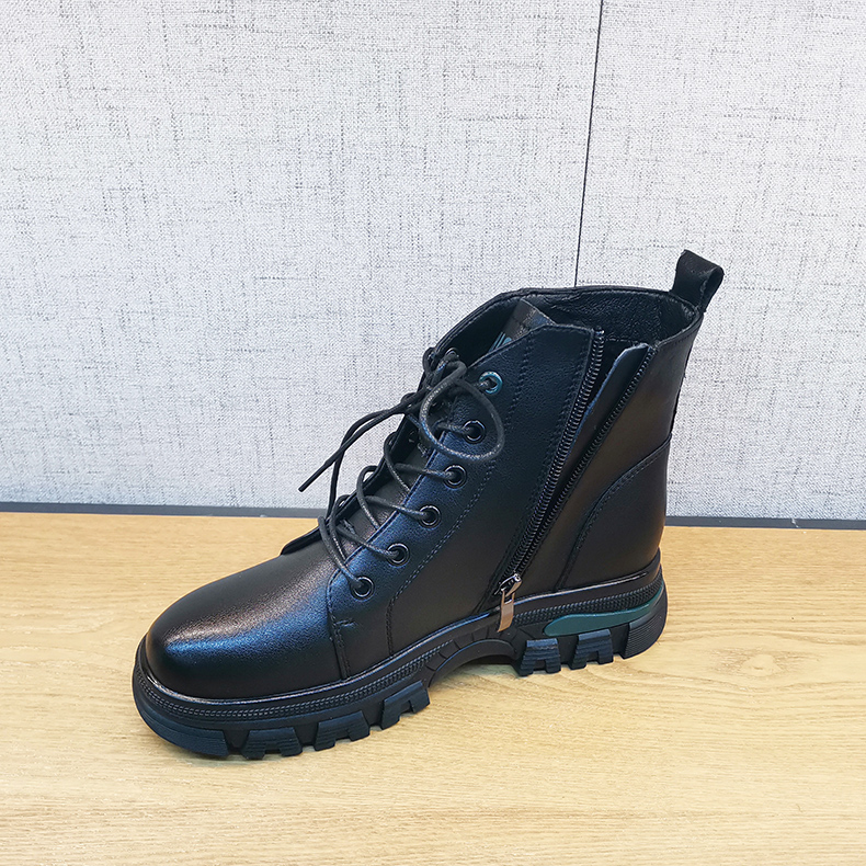 2021豪行冬季新款正品真皮舒适百搭加绒低跟女棉鞋短靴21455275