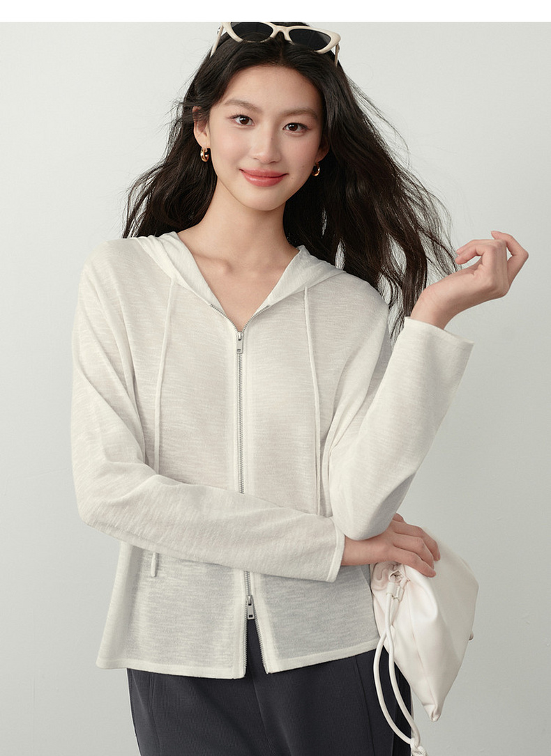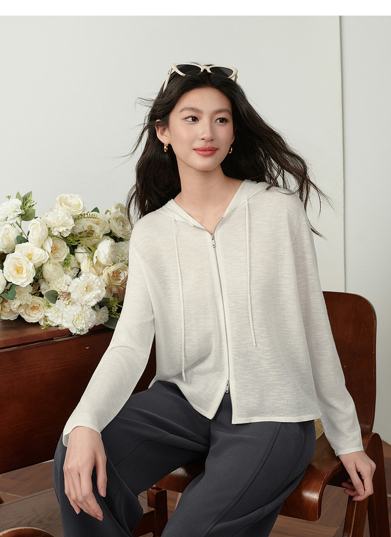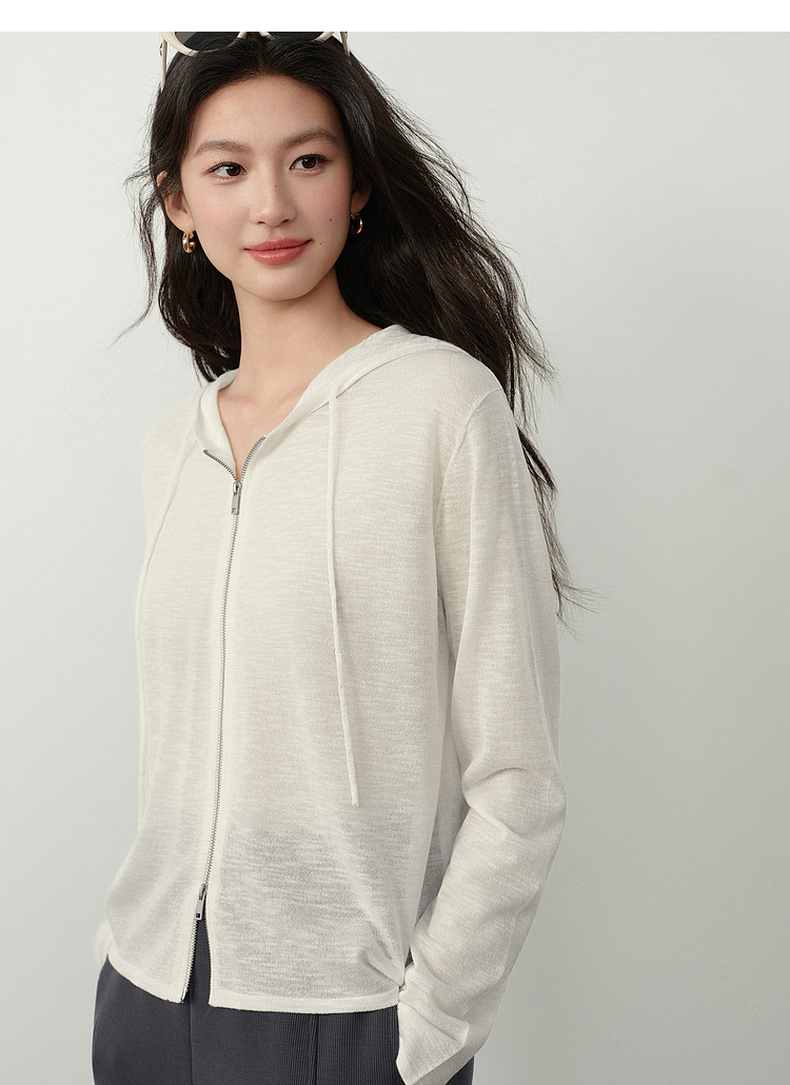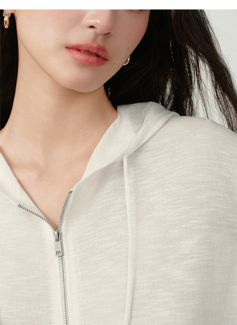 【严选】诗凡黎云朵亚麻连帽拉链针织开衫2026春夏新款韩系慵懒百搭薄外套7H3430611