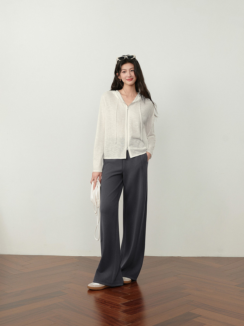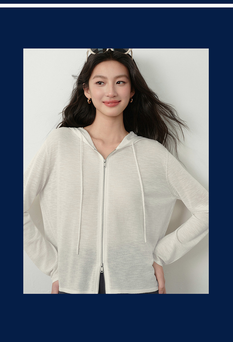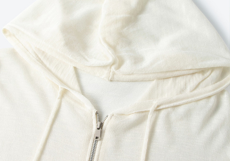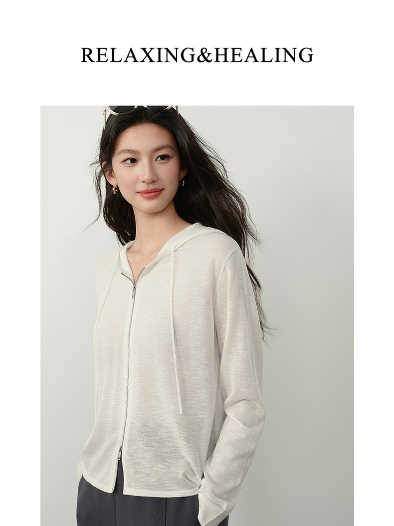 【严选】诗凡黎云朵亚麻连帽拉链针织开衫2026春夏新款韩系慵懒百搭薄外套7H3430611