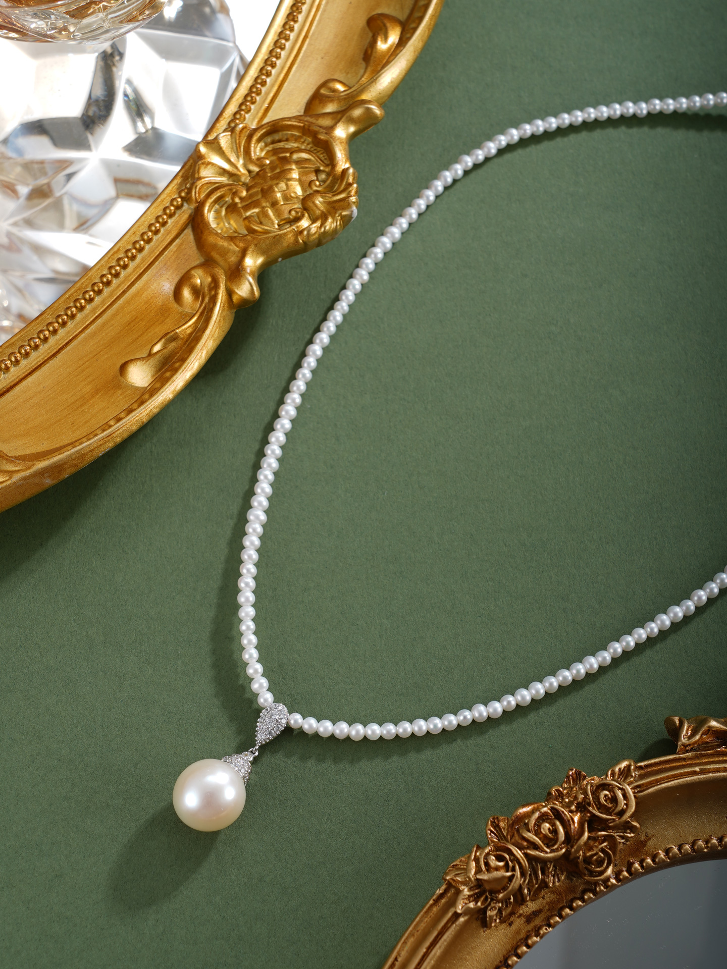 子佩集【岁岁安然】银S925珍珠惜王妃项链【ZZXL005】2.8mm小珠12mm大珠水滴2601