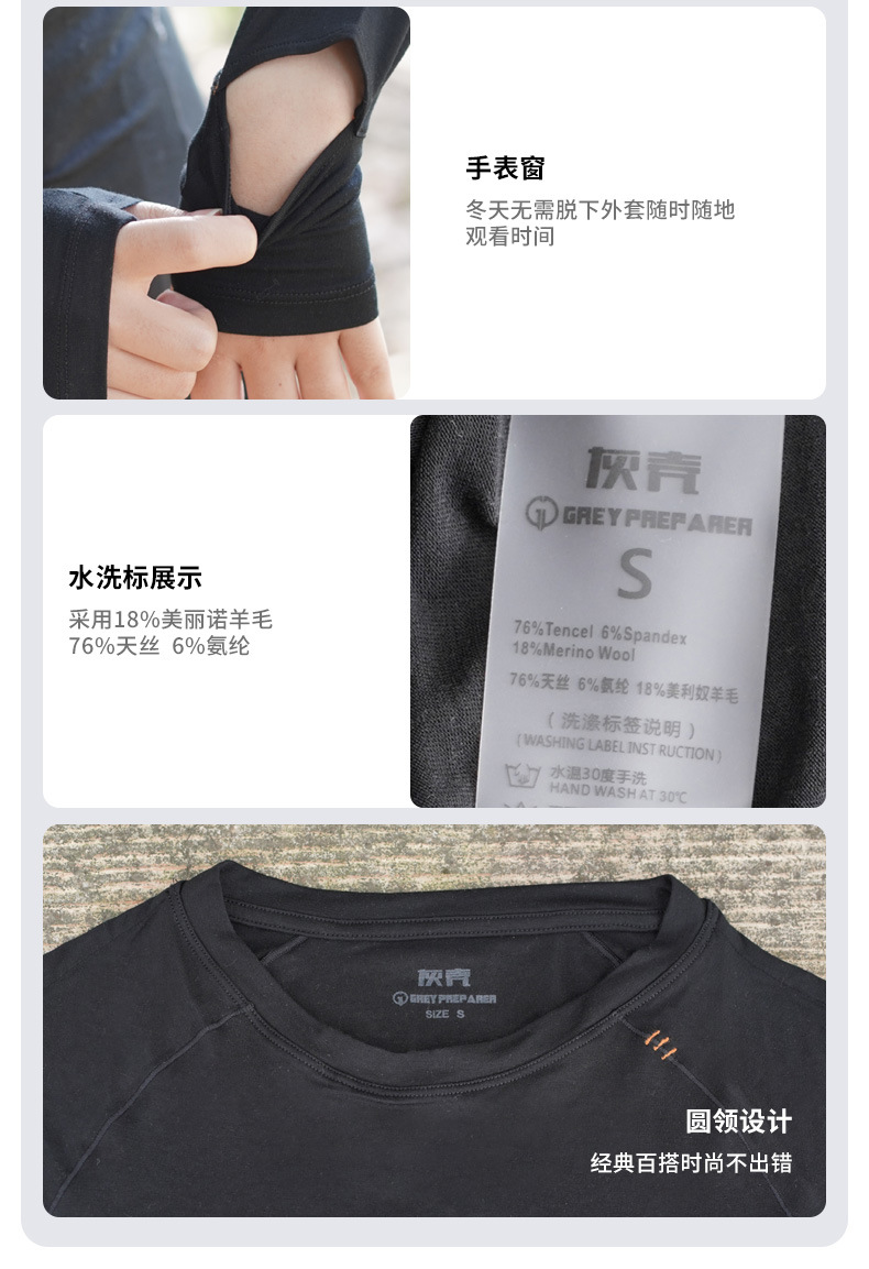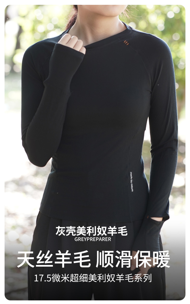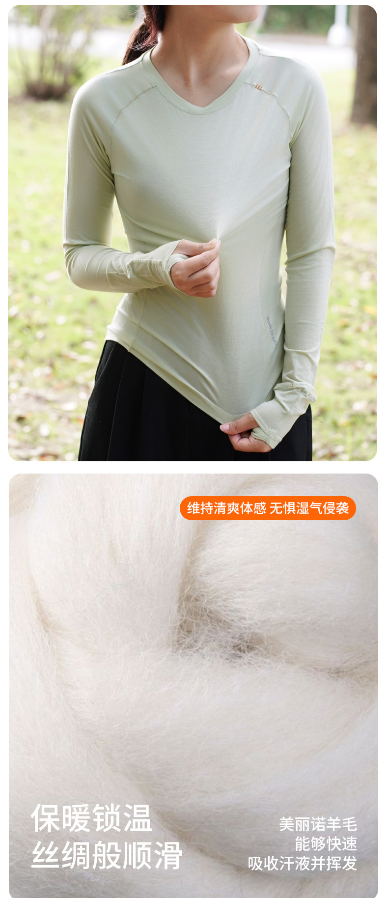 户外美利奴天丝羊毛速干衣保暖透气滑雪女美丽诺徒步运动内衣打底