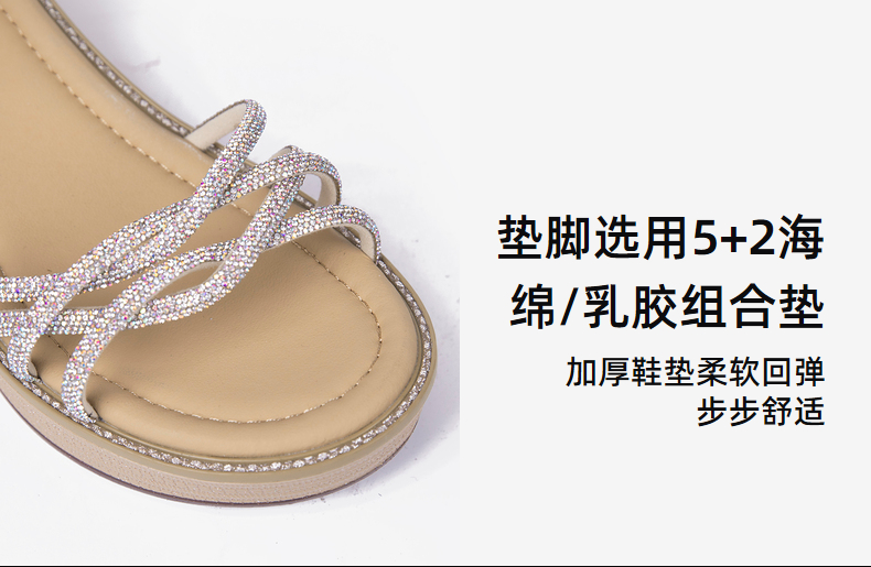 千百度闪钻编织底渔夫鞋女休闲平底鞋舒适浅口单鞋A25136813