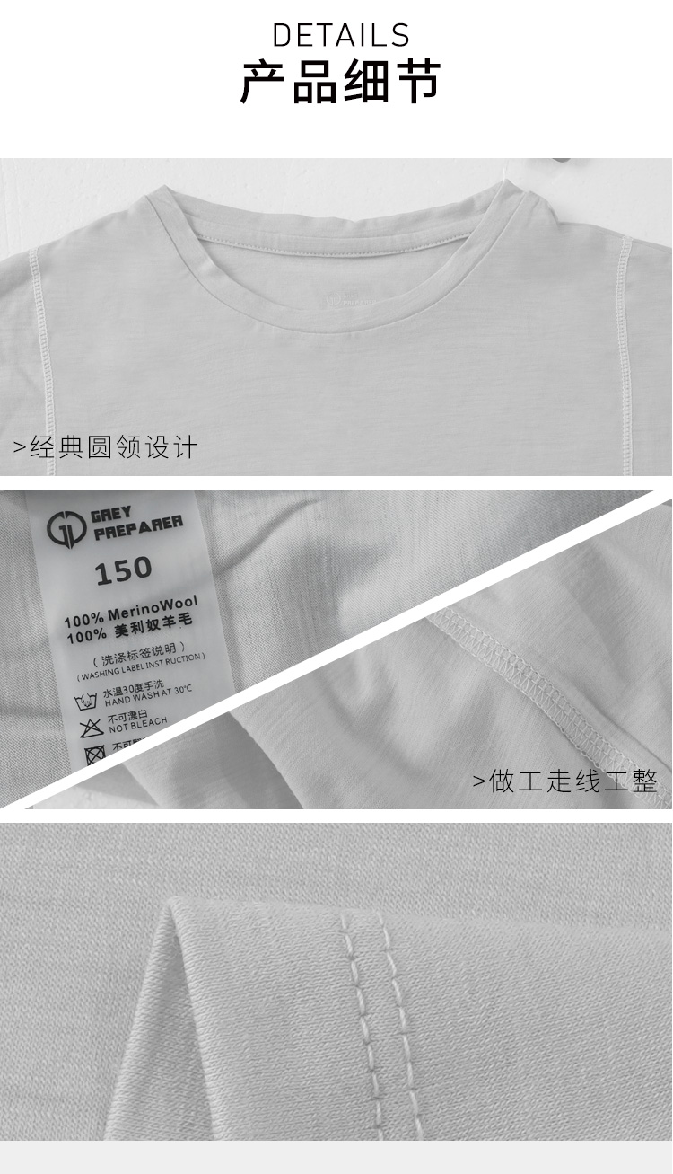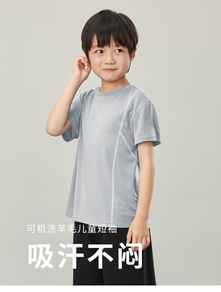 灰壳户外儿童美利奴羊毛速干衣吸湿排汗透气美丽诺运动短袖T恤夏季