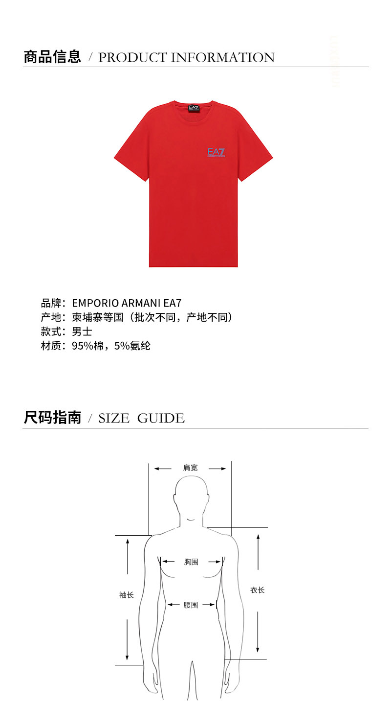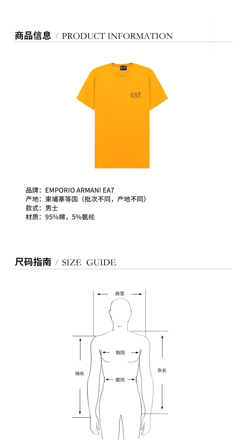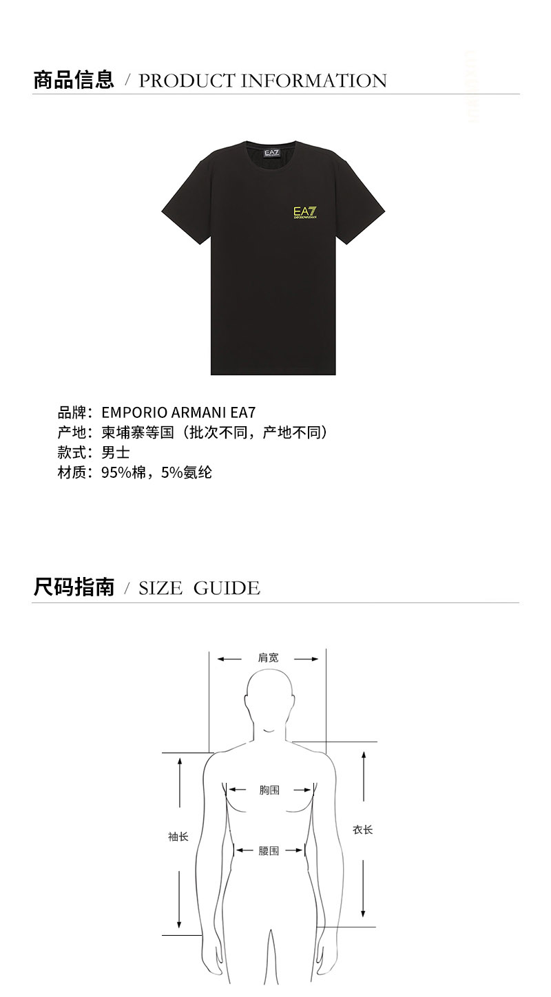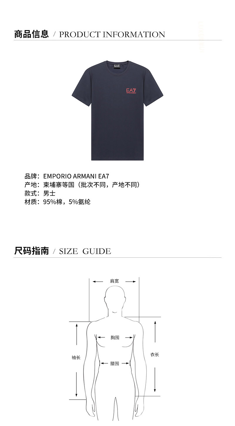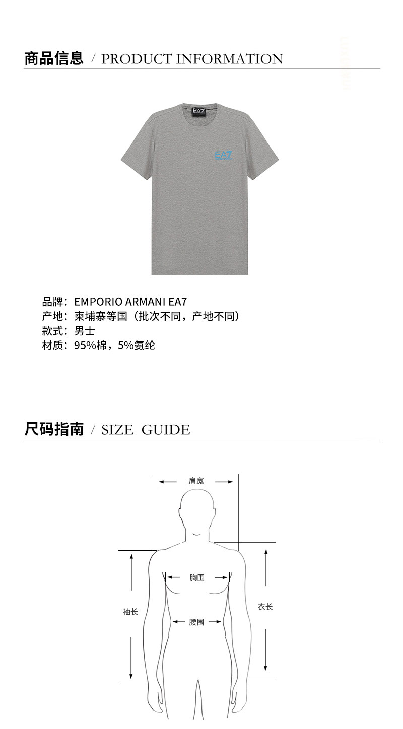 EA7/EA7 男士短袖T恤 男士棉质圆领短袖T恤 3KPT06 PJ03Z