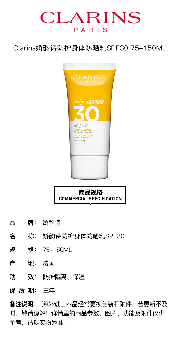 Clarins娇韵诗防护身体防晒乳75-150ML SPF30