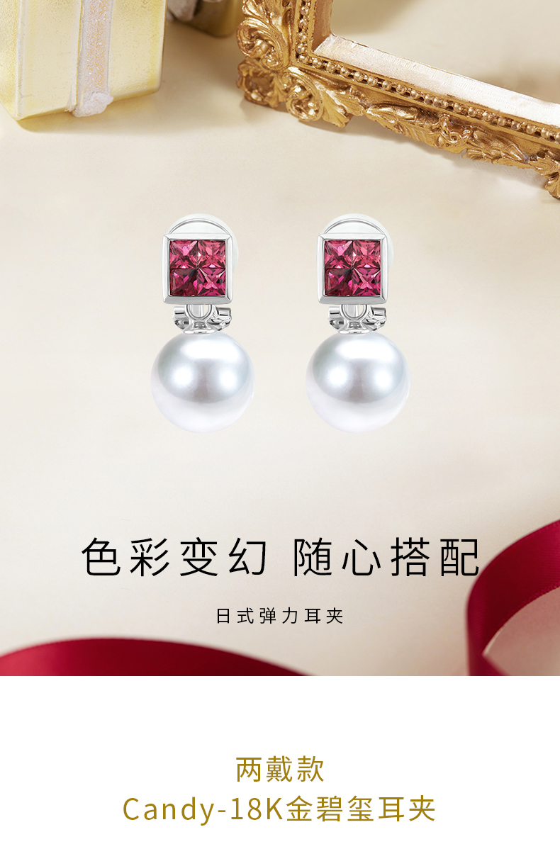 【天猫同款】方形Candy两戴-18k金碧玺耳夹