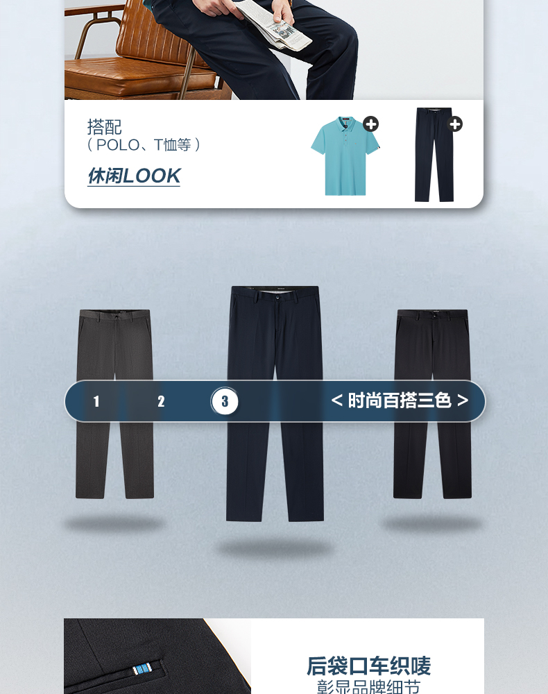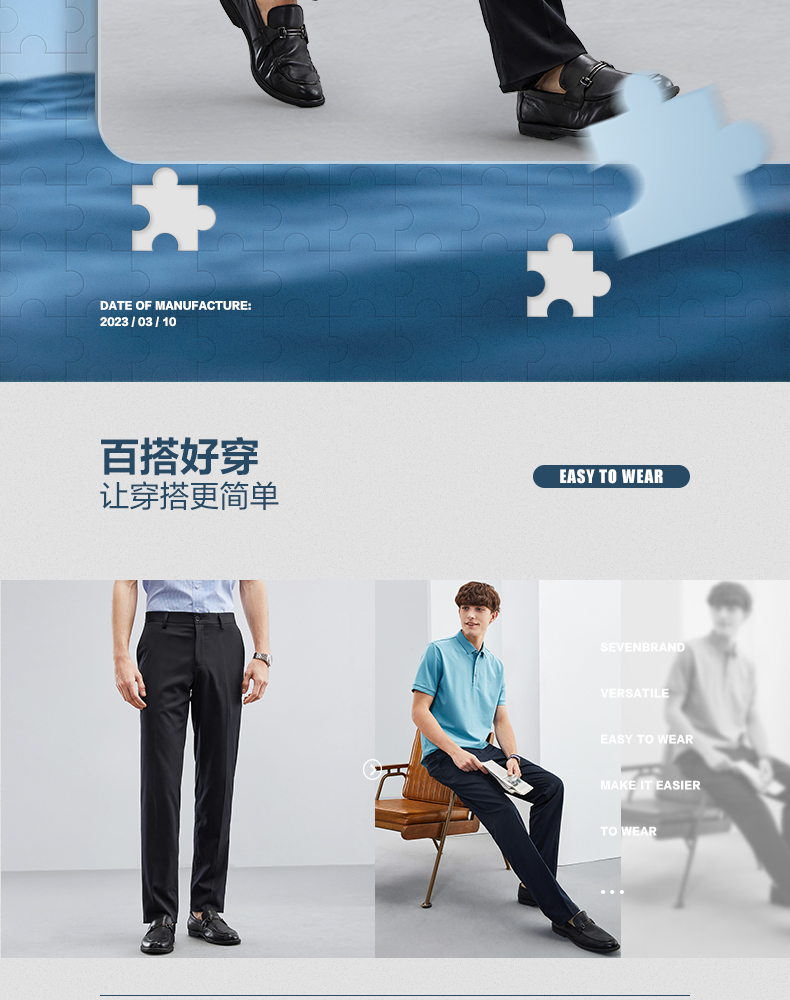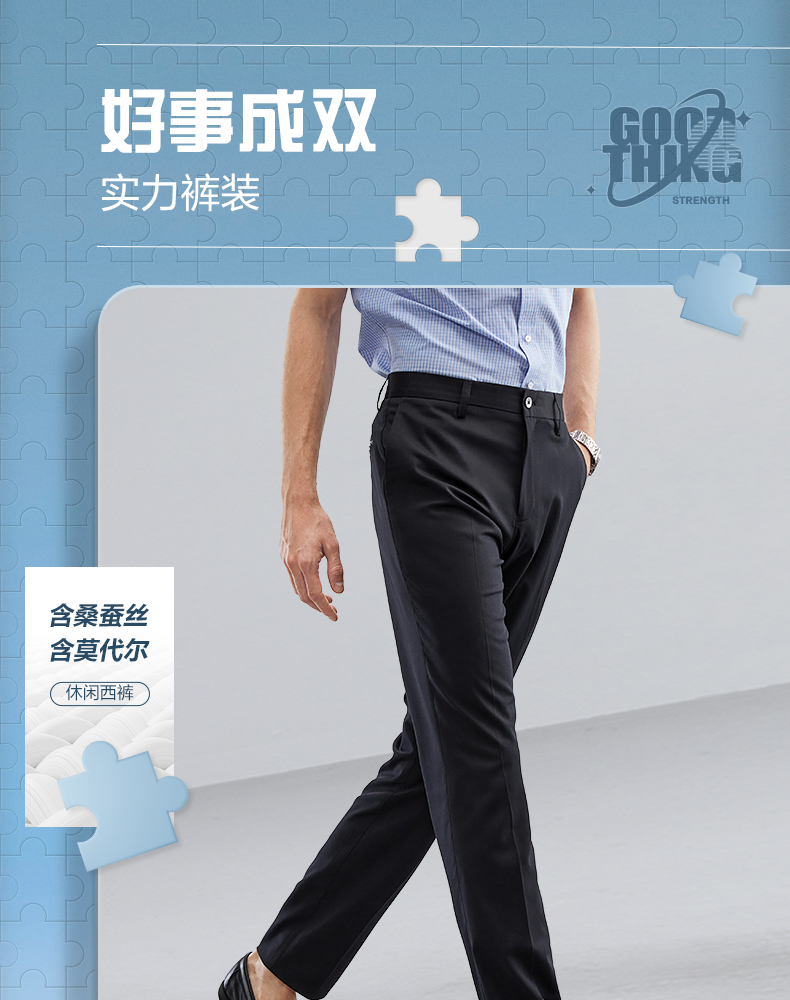 【含桑蚕丝/莫代尔】柒牌西裤男春夏新款职业舒适垂感直筒裤 124H71140