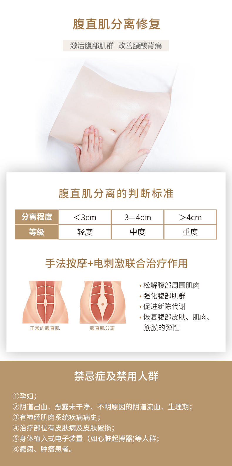 腹直肌分离修复 手法按摩+电刺激联合治疗 一疗程(10次)