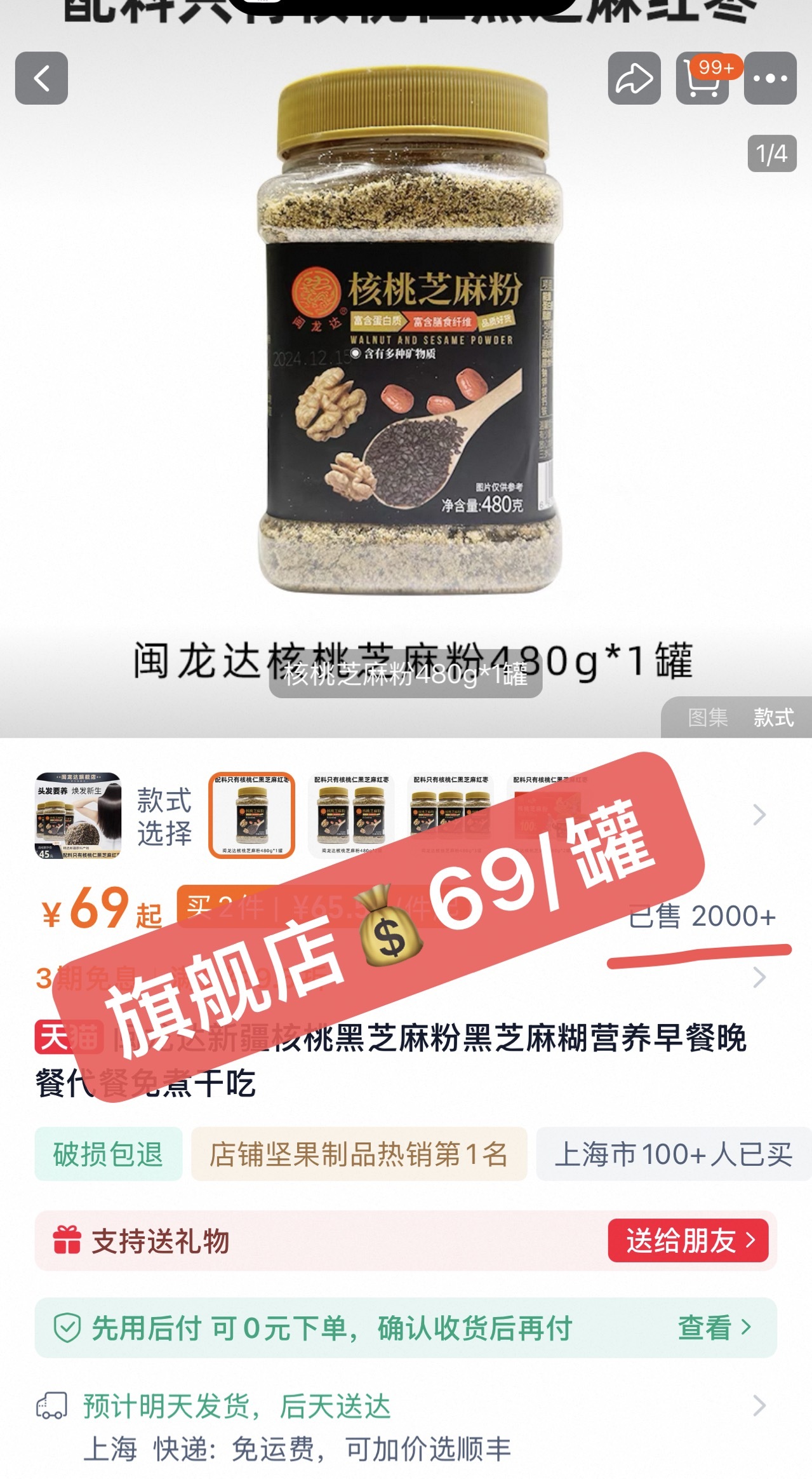 🔺不是库存临期清仓 🔺不是产品退市下架 就是纯纯捡漏‼️和Costco一起下单多出来的❗️ 去年清仓的1200罐瞬间就被秒完 高核桃含量,吃一口满嘴留香,方便又饱腹 【闽龙达 · 核桃芝麻粉480g】 今年更换了新包装,配料不变 只有3000罐,售罄不补 旗舰店💰69,开团仅💰29.9! 全家当早餐、作为夏季养生食品都可以