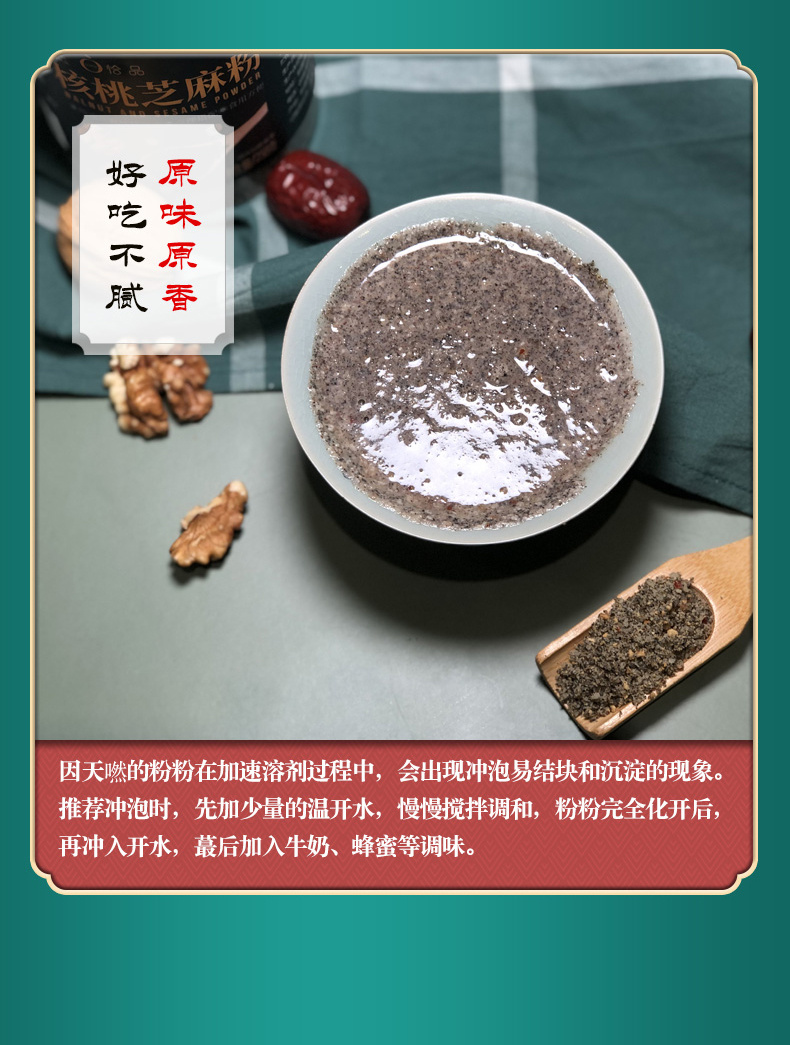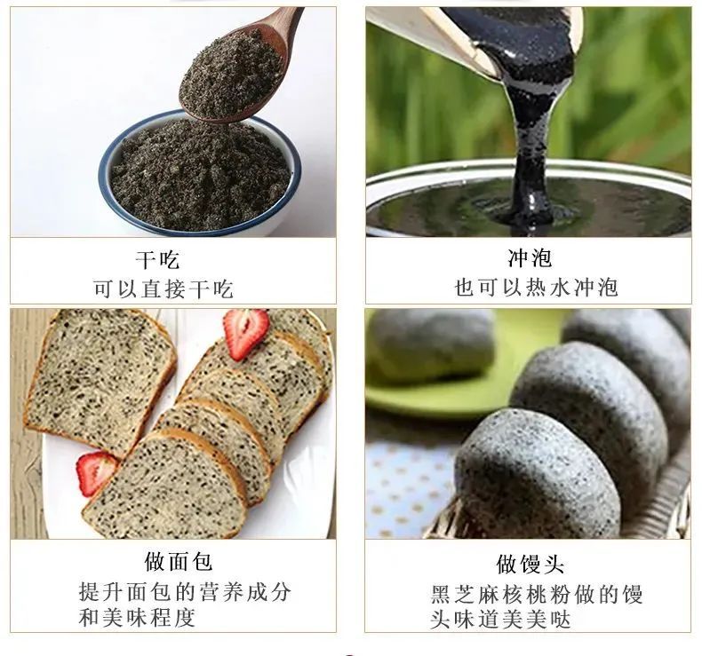 ✅吃法多样,营养又美味 早上来上一杯暖暖的芝麻糊 或是直接吃上2勺核桃黑芝麻粉 既美味又养生,别提多舒服了!
