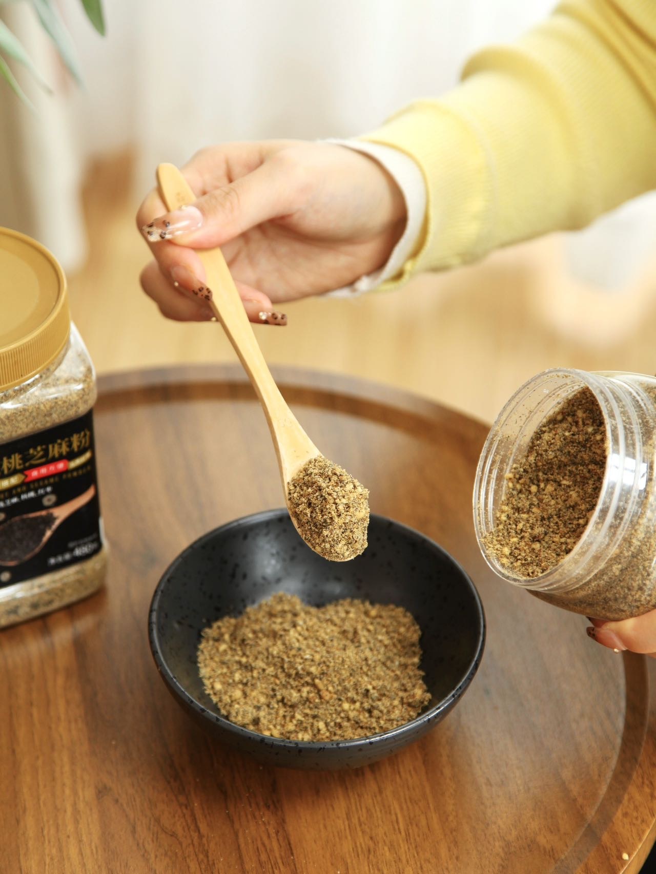 懂养生的明星都在吃核桃芝麻粉 孙俪曾经在微博上传授她好发质的秘诀 就是每天吃一勺核桃芝麻粉