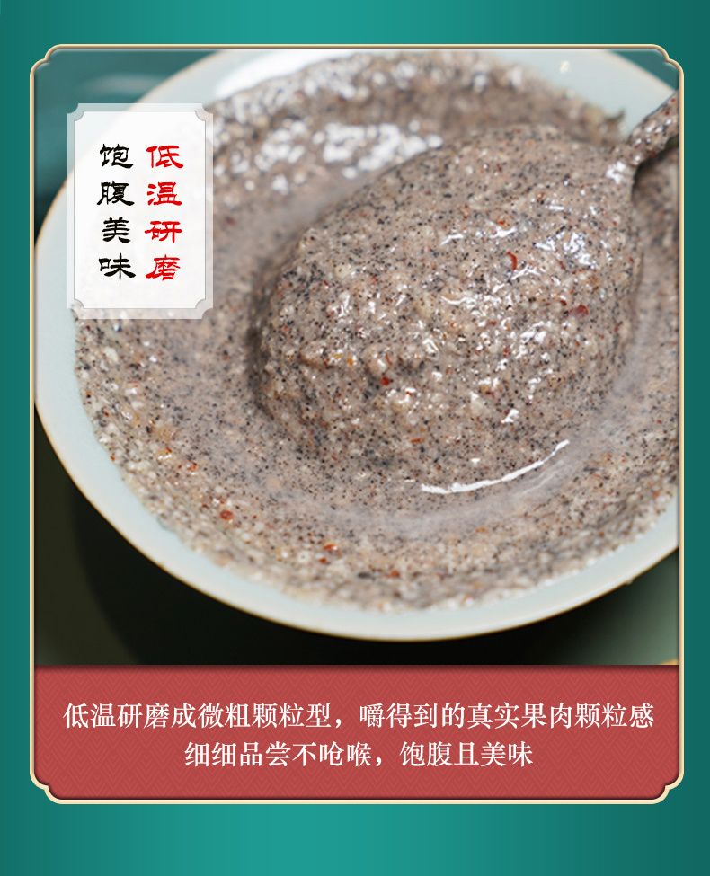 ✅精细研磨 研磨成微粗颗粒型 口感微甜舒爽,香浓可口,还原自然风味 能嚼得到的真实肉颗粒感 细细品尝不呛喉,饱腹且美味 食补养生的一把好手