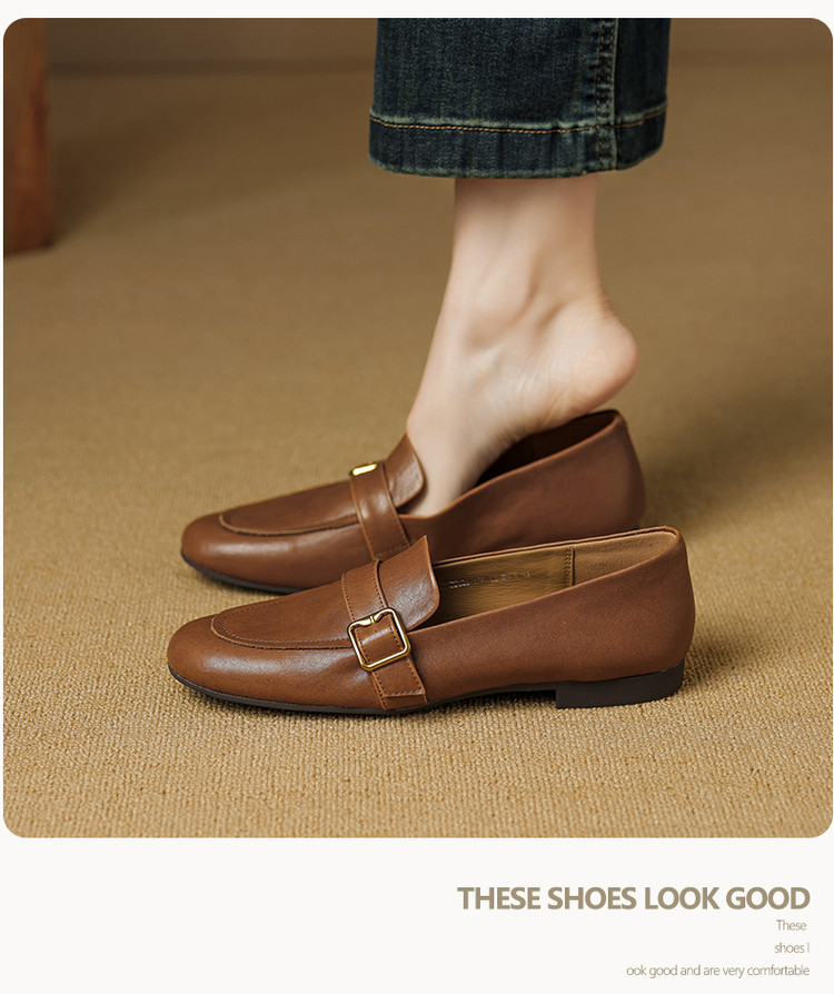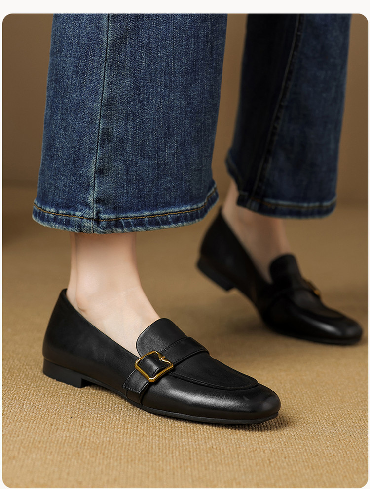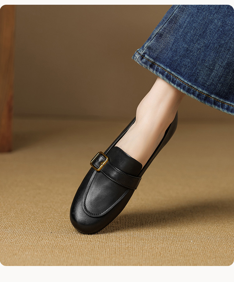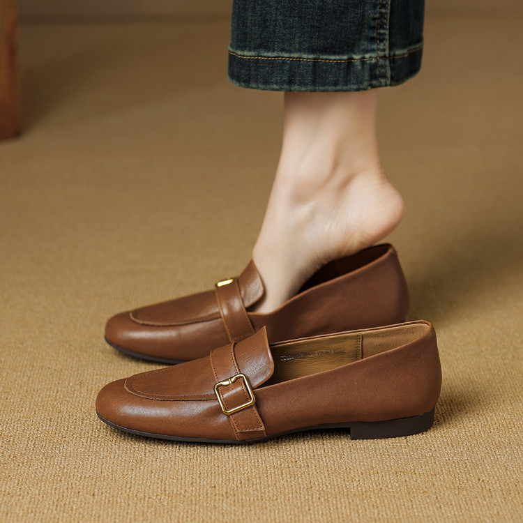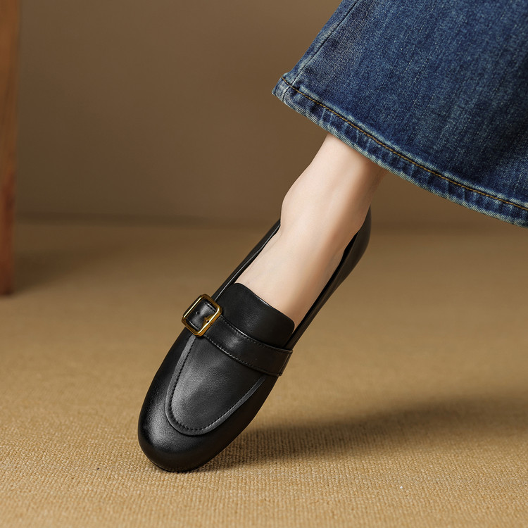 【预售5天】巨好穿软牛皮平底乐福鞋女新款圆头深口单鞋百搭通勤小皮鞋SSS&S9868