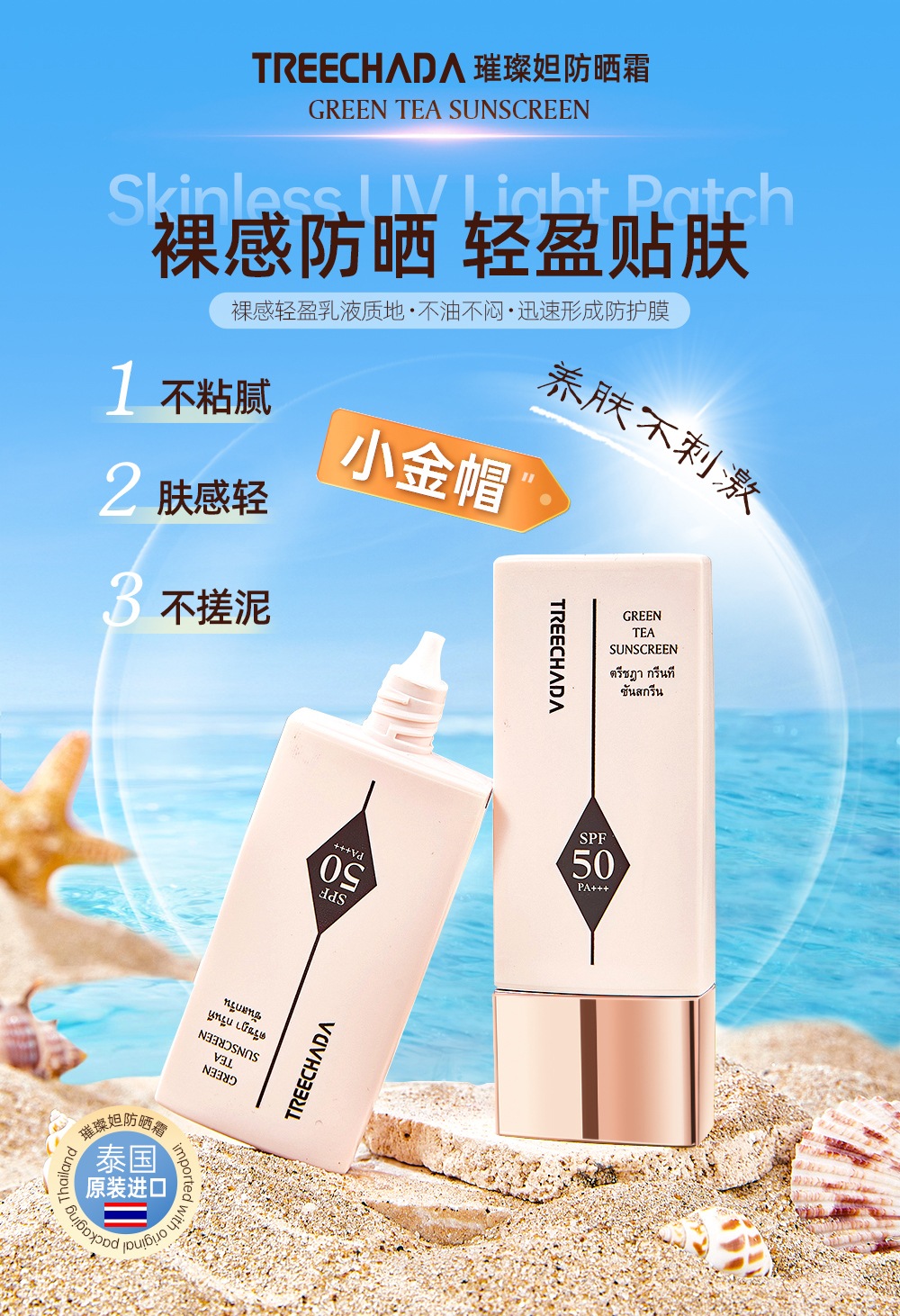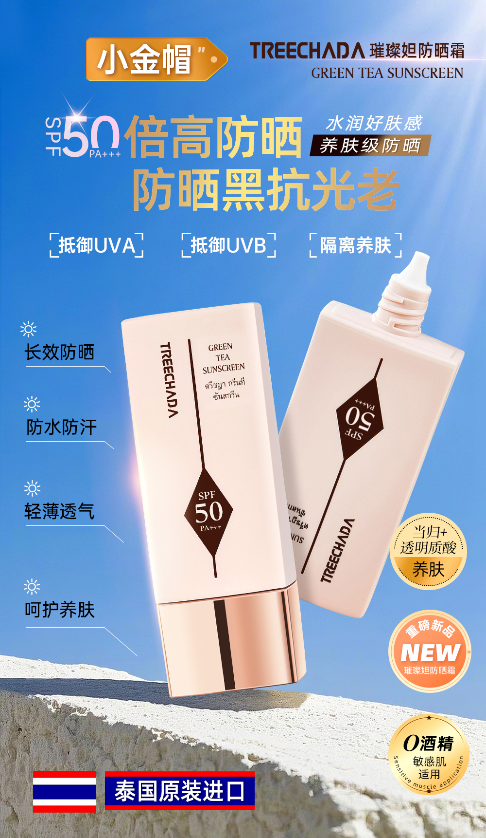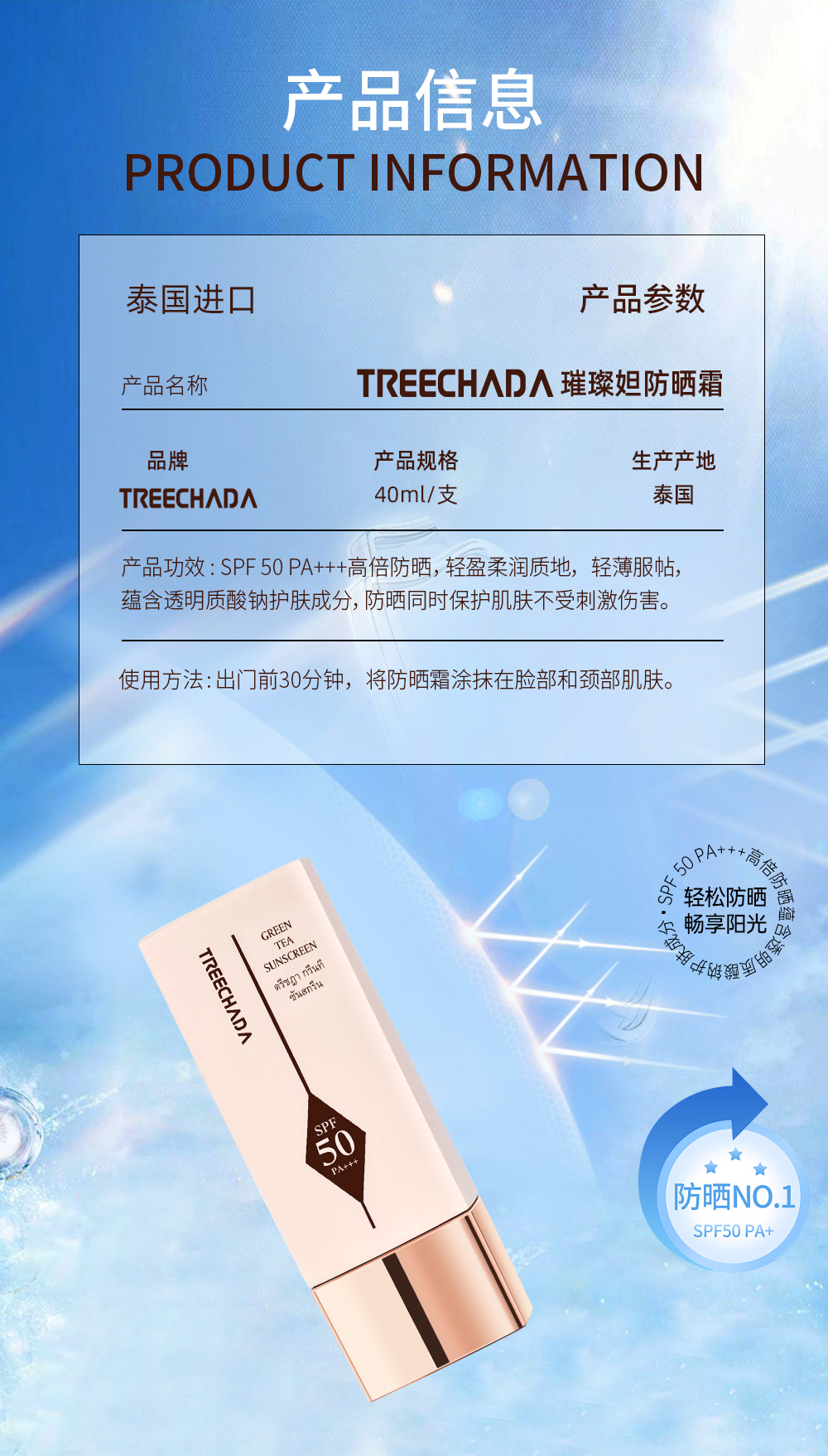 【热夏出门必备!69元2支】TREECHADA璀璨妲防晒霜 清爽水感 拒绝黏腻 隔离紫外线