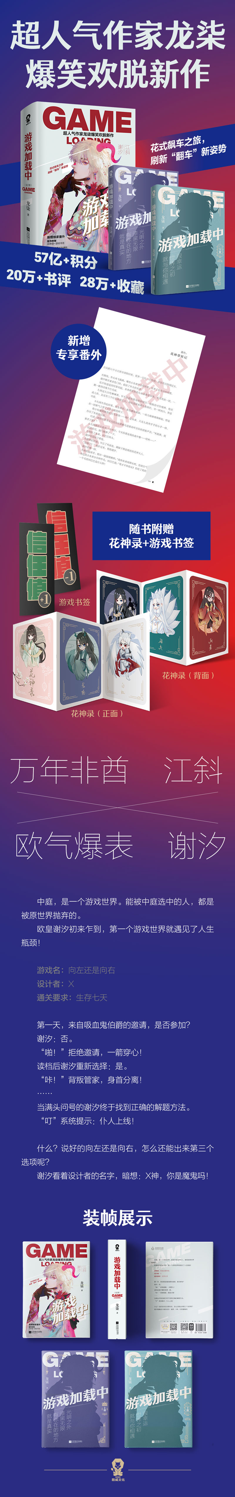 ★超人气作家龙柒爆笑欢脱新作,新增独家番外! ★万年非酋的老司机江斜 VS 欧气爆表的小狐狸谢汐,意想不到的准世界设计,修罗场般的通关之路。 ★光明之外,漆黑无限。有你在的地方,就是真实。 ★很幸运,世界之初,就与你相遇。 ★随书附赠 花神录+游戏书签。