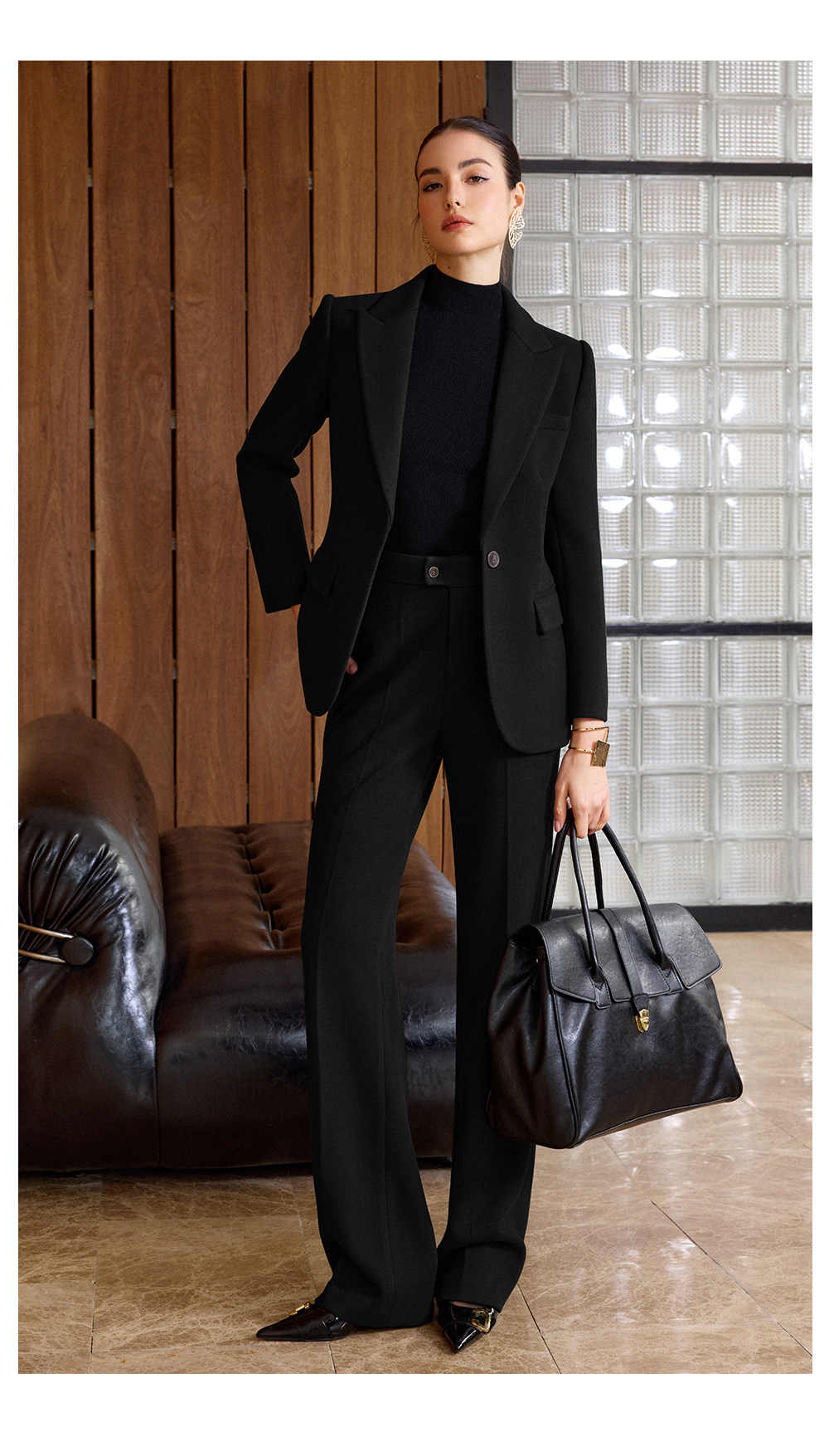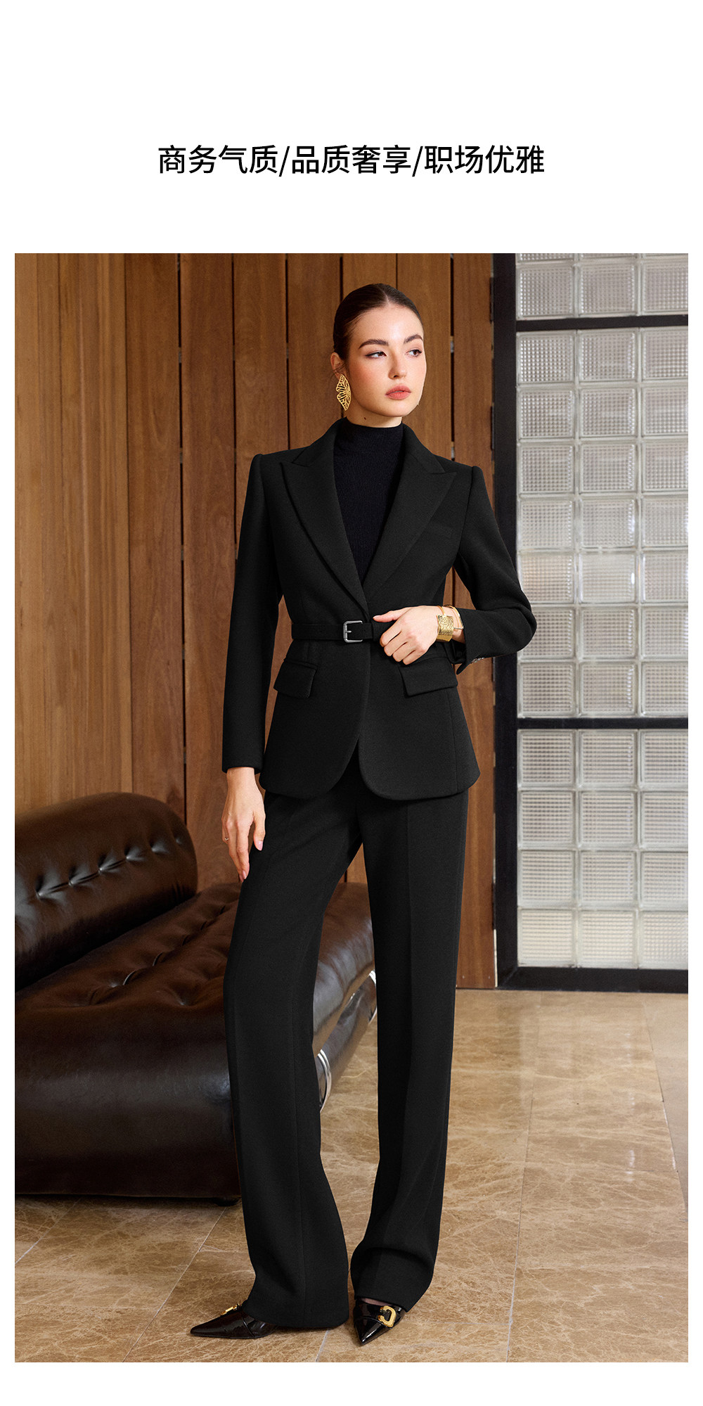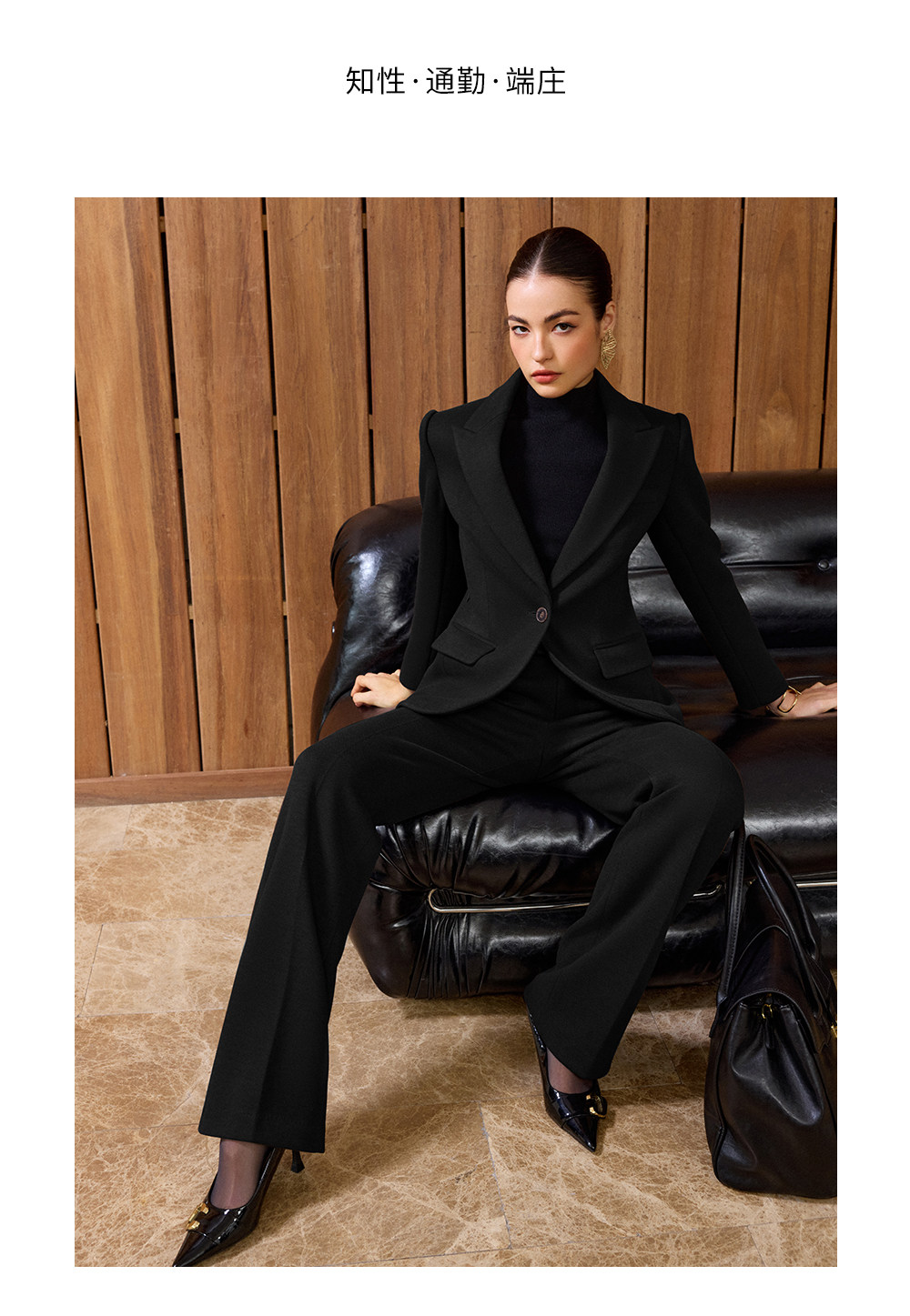 IWY/老钱风黑色毛呢西装套装女高级感阔腿裤两件套气质职业装CP2579