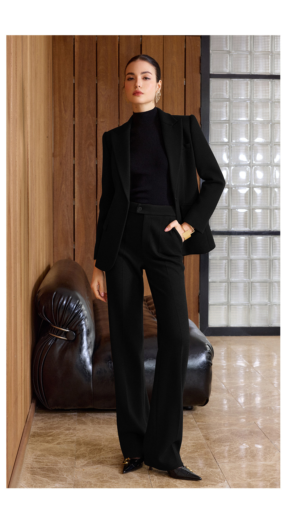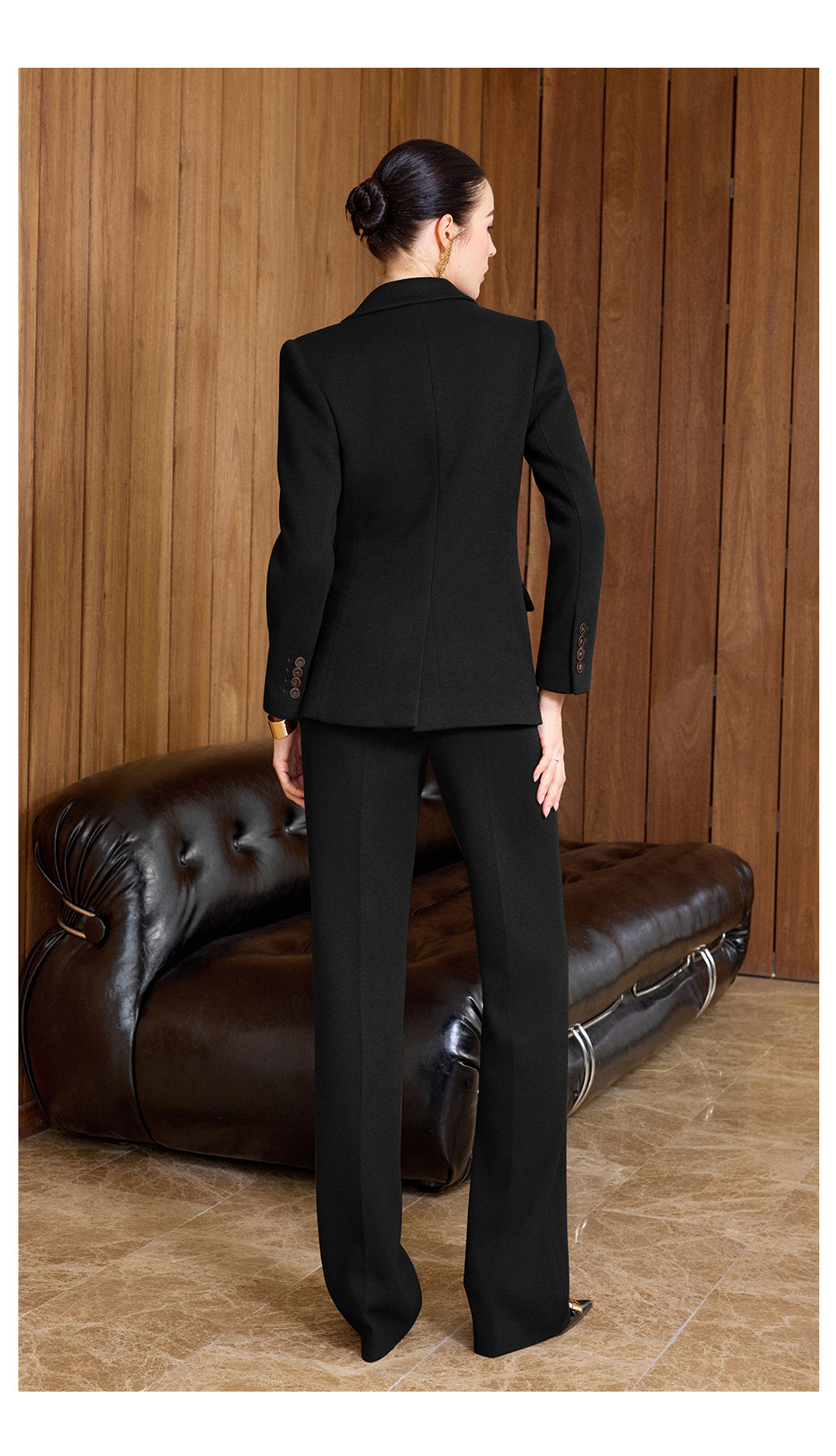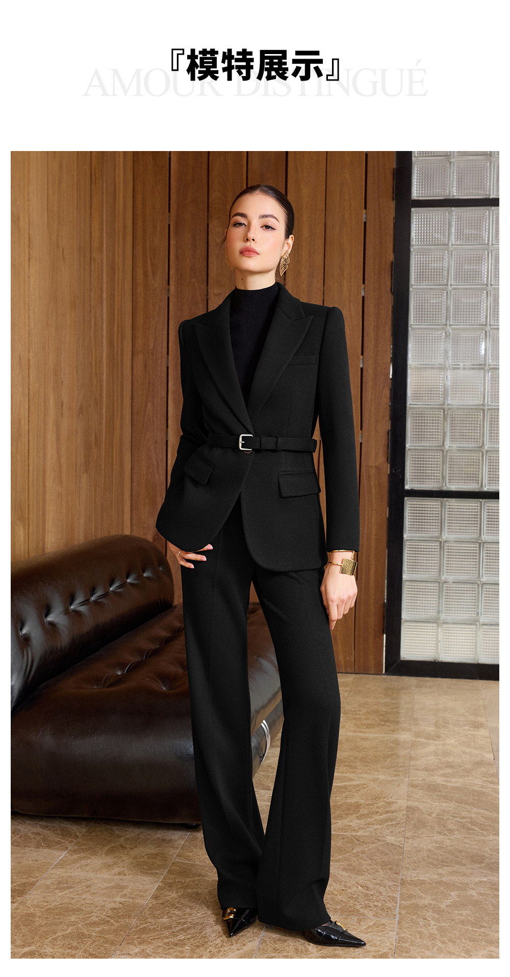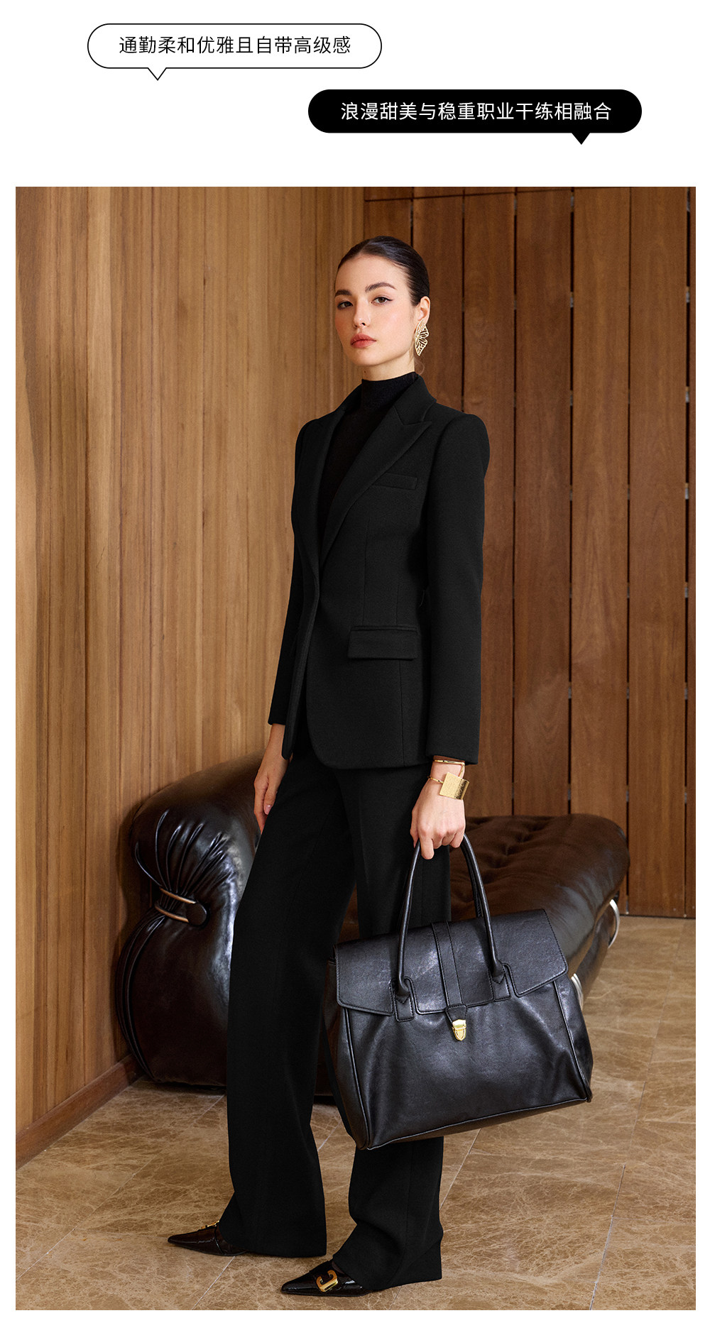 IWY/老钱风黑色毛呢西装套装女高级感阔腿裤两件套气质职业装CP2579