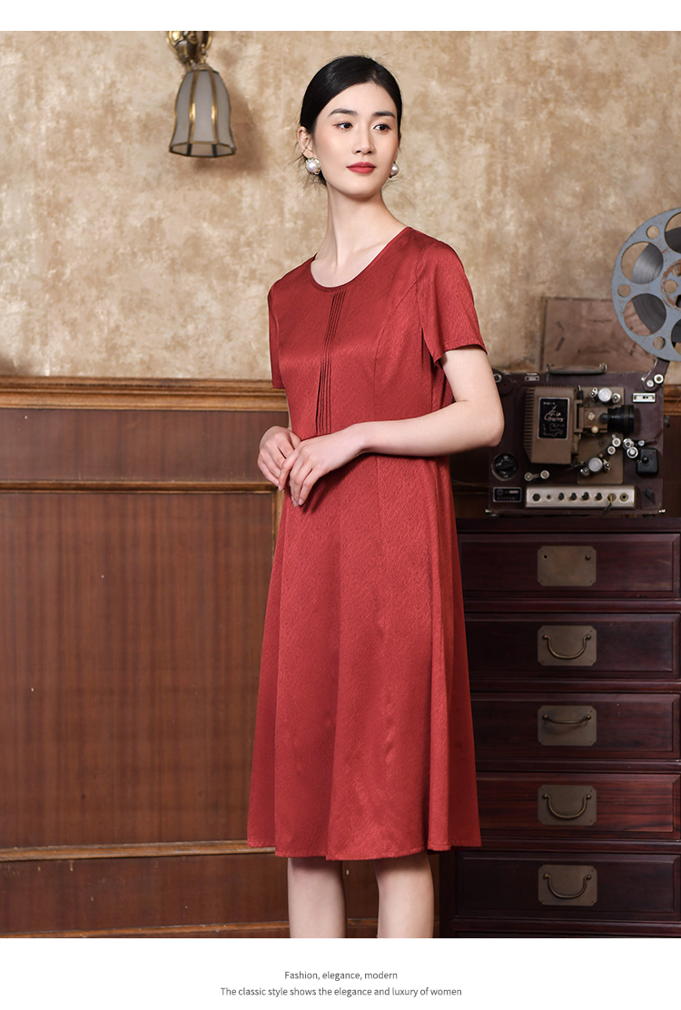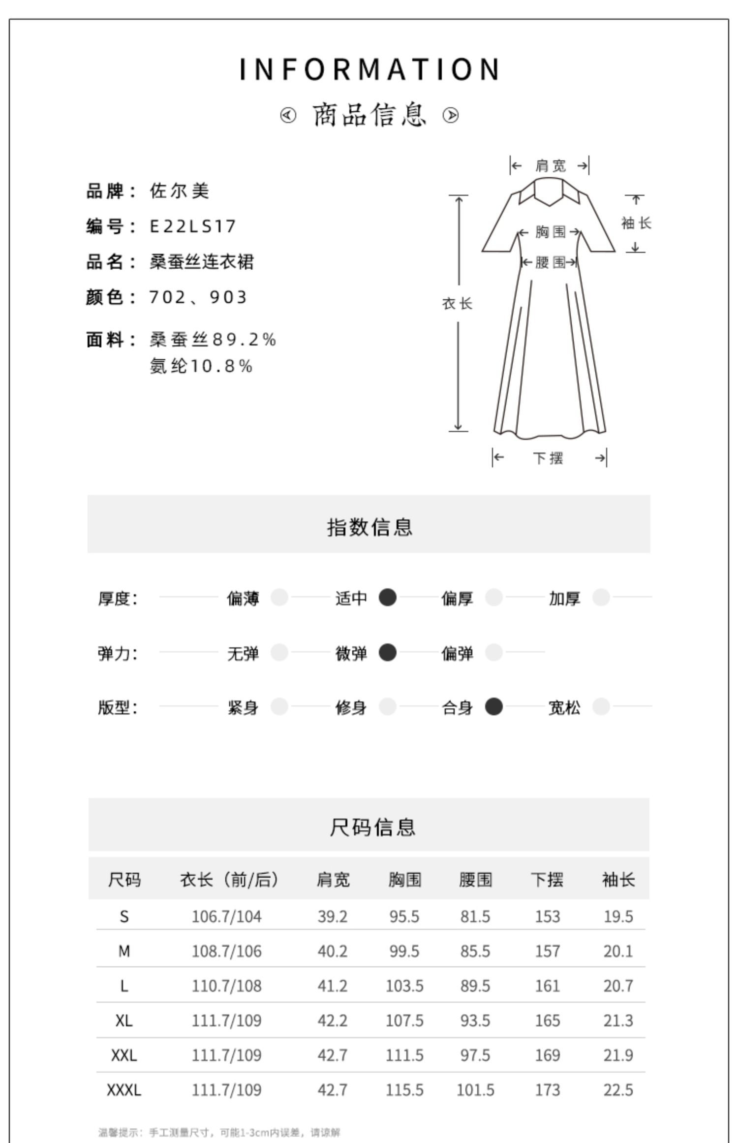 佐尔美2022夏季新款 桑蚕丝真丝桑波缎提花连衣裙女E22LS17