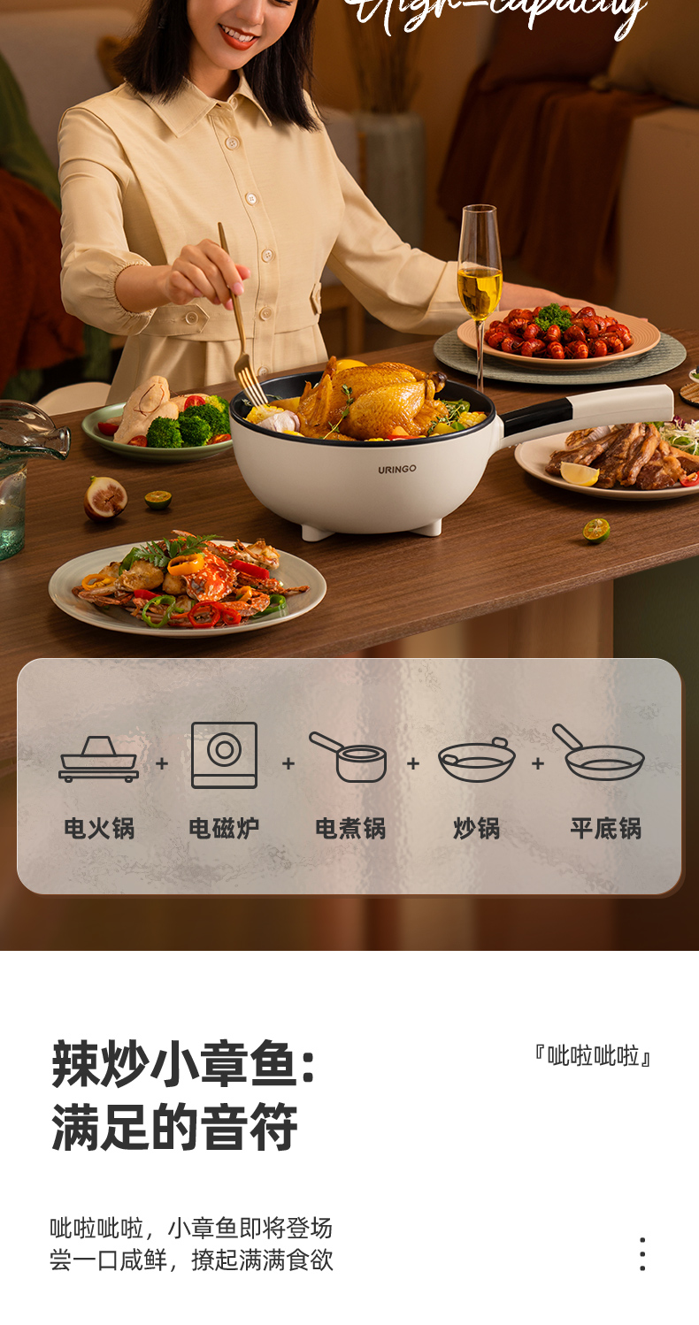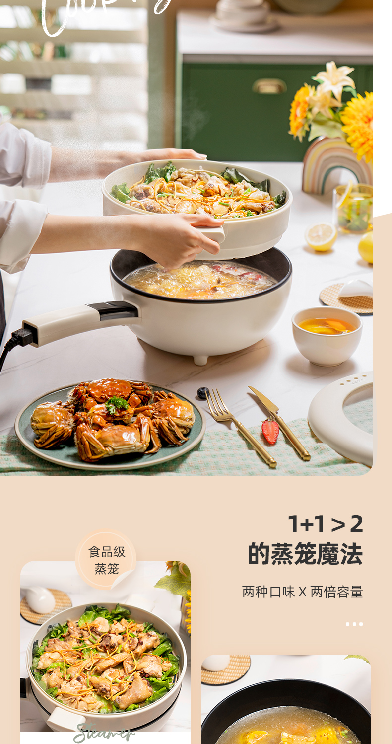 七彩叮当家用多功能电炒锅小型聚能加热便捷手持一体电煮锅