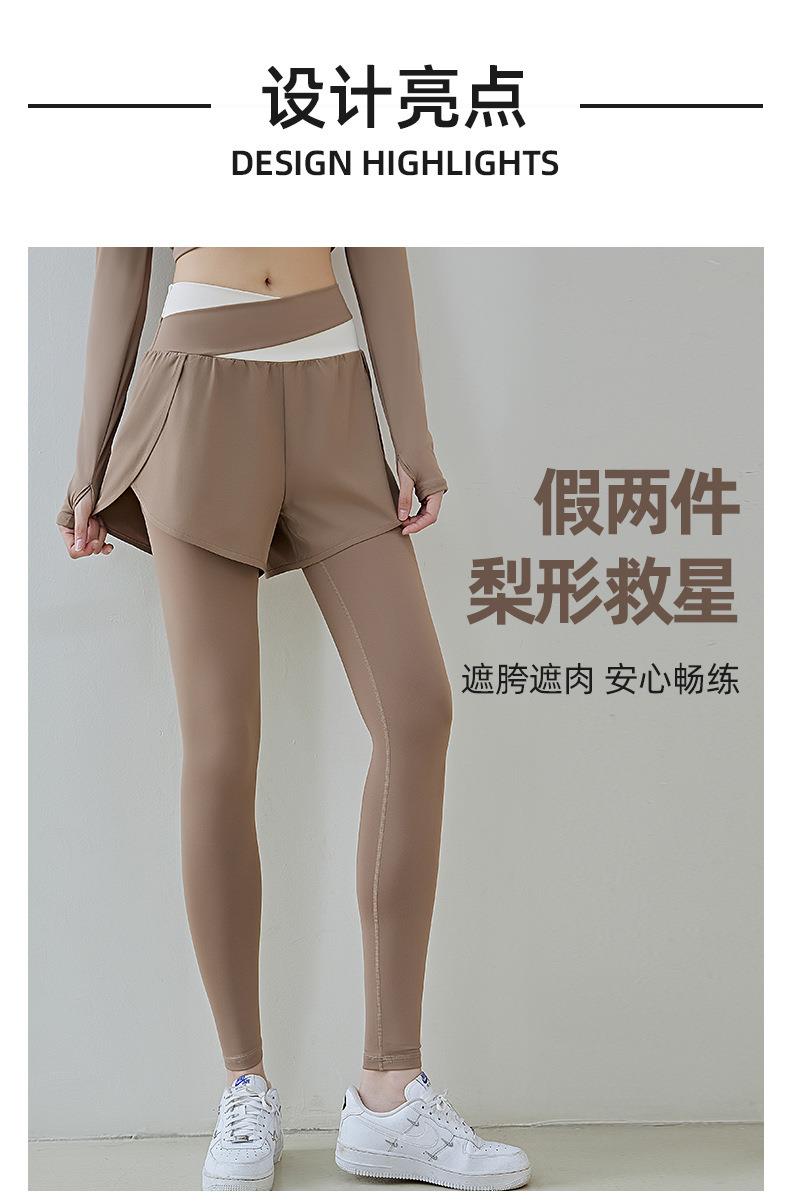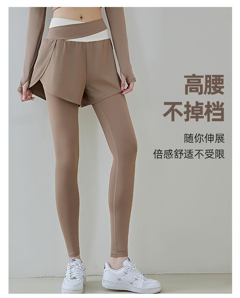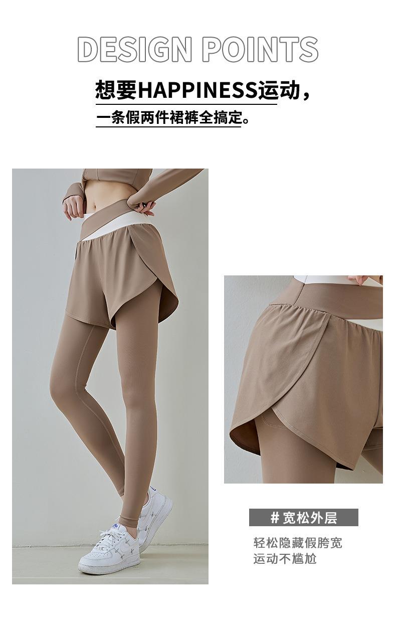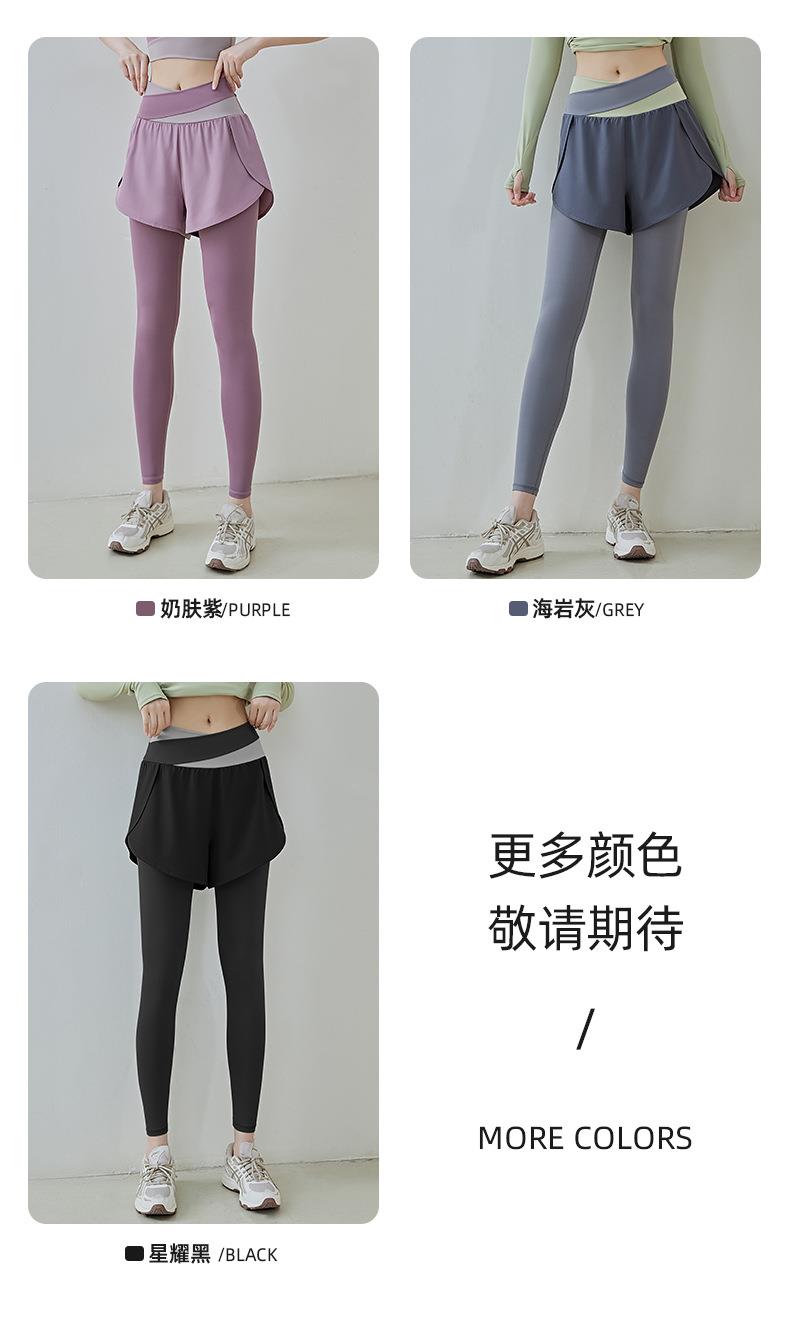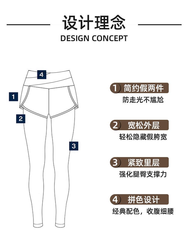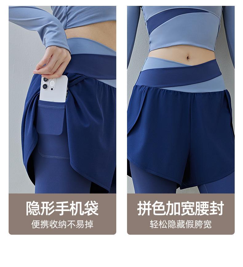 聚衣堂高弹速干运动健身裤拼色假两件防走光瑜伽裤高腰网纱口袋裤