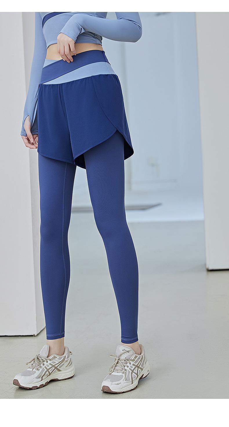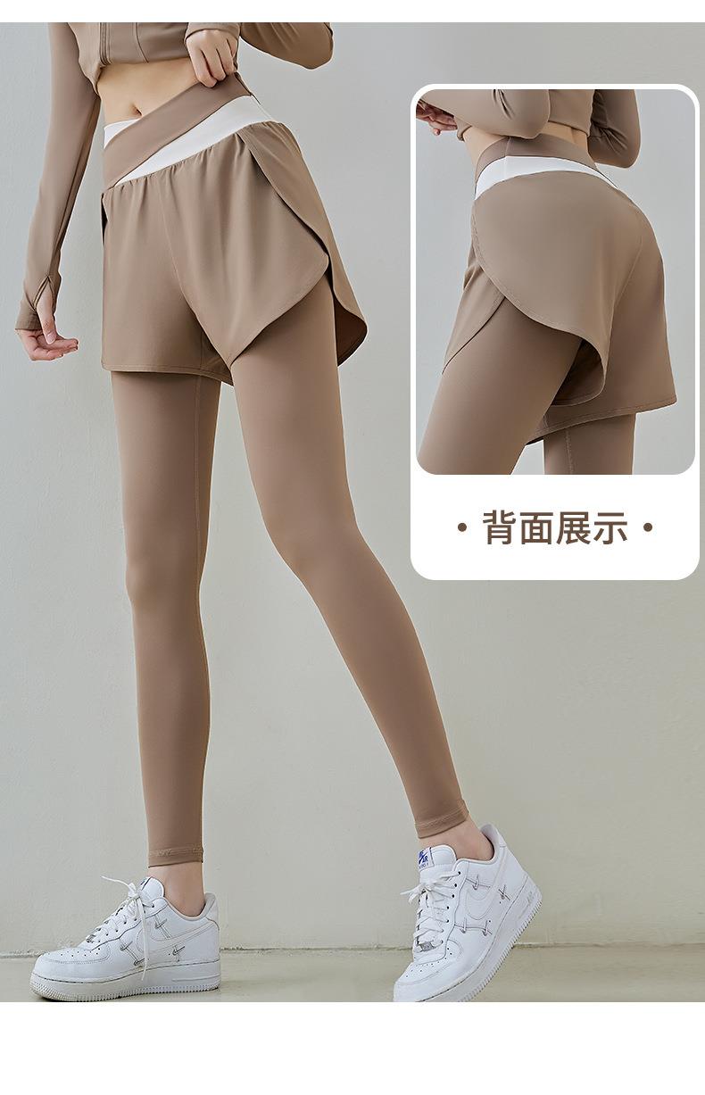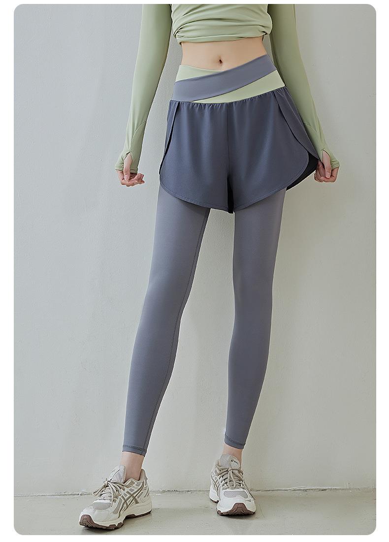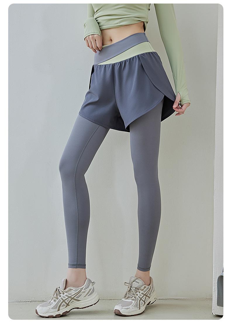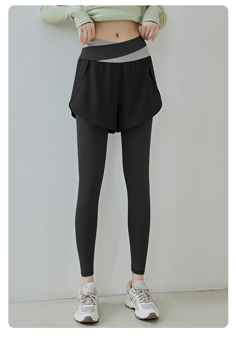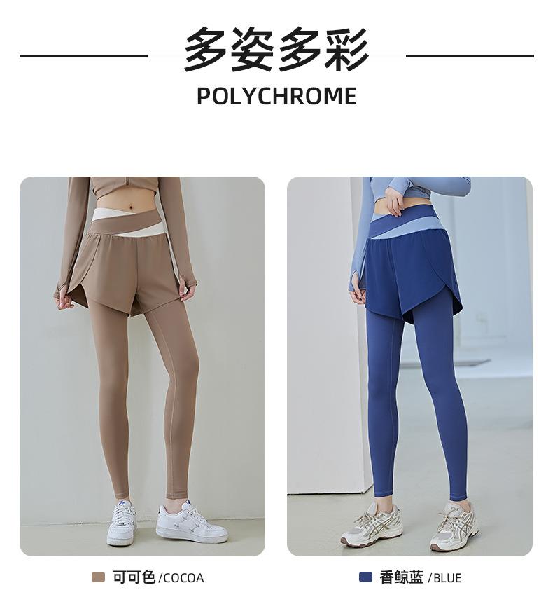 聚衣堂高弹速干运动健身裤拼色假两件防走光瑜伽裤高腰网纱口袋裤