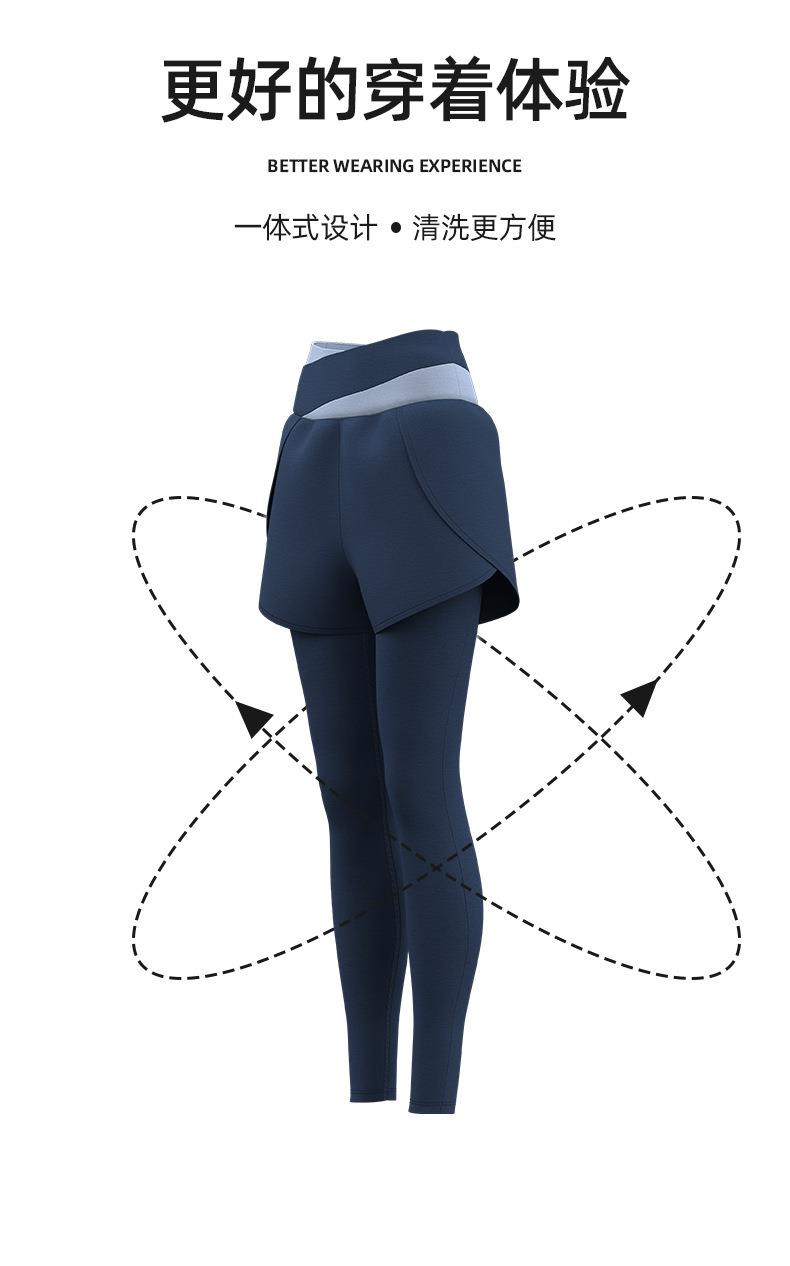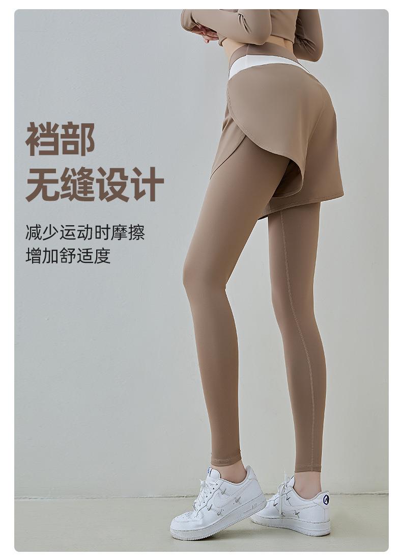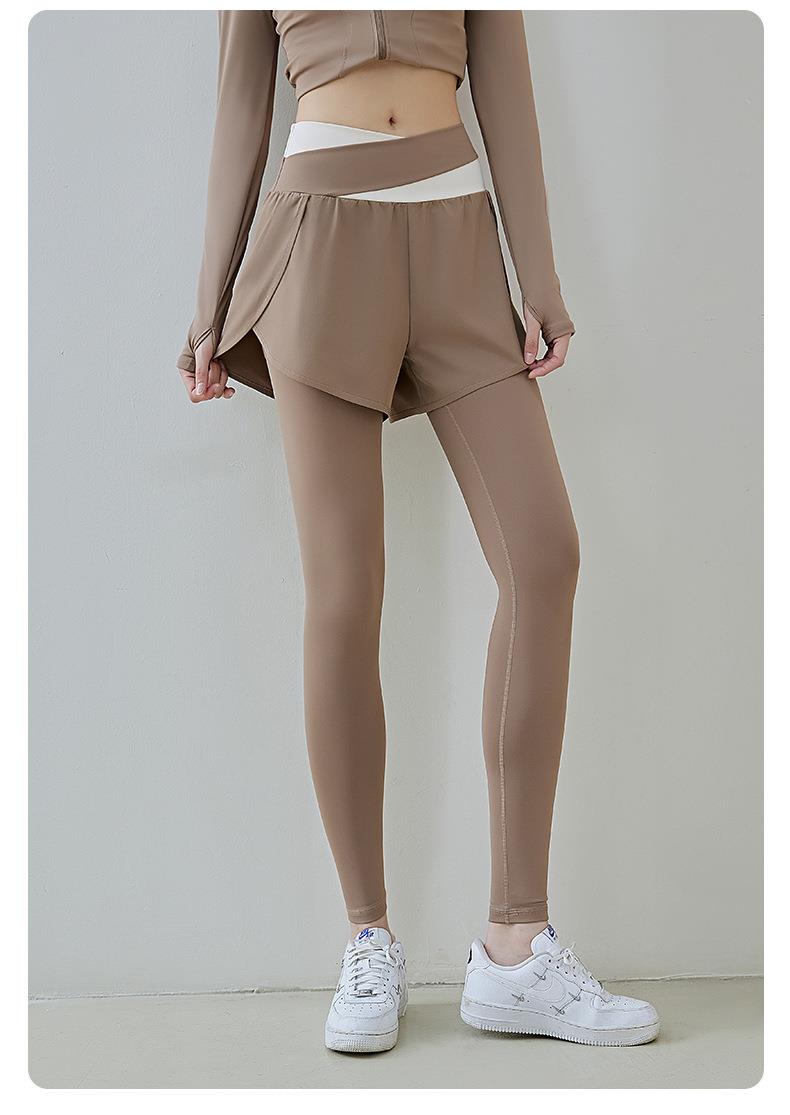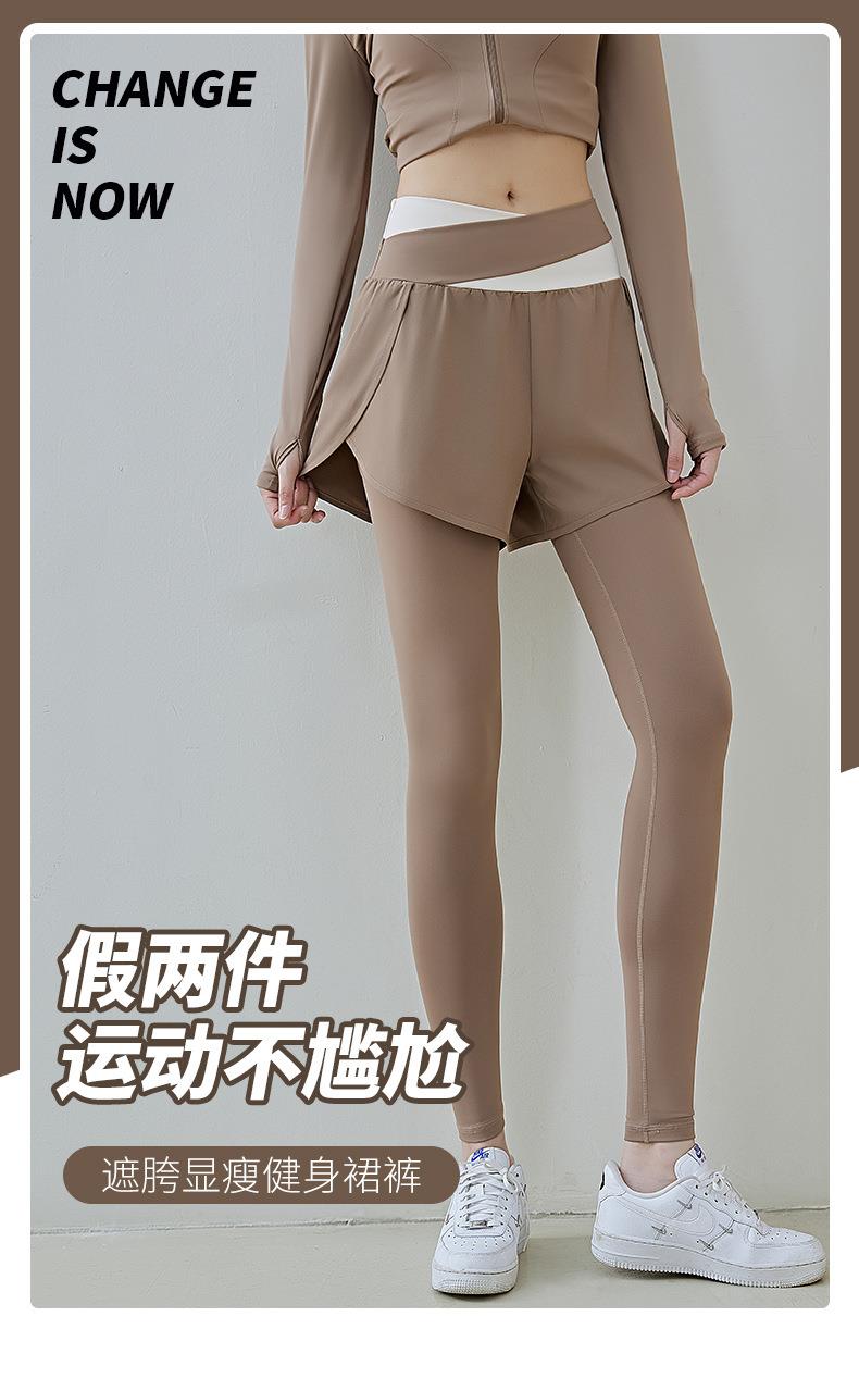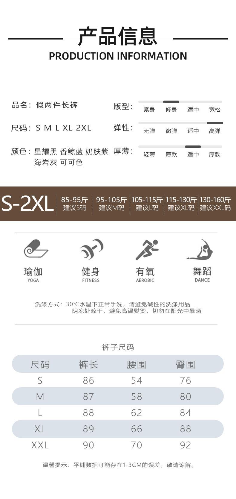 聚衣堂高弹速干运动健身裤拼色假两件防走光瑜伽裤高腰网纱口袋裤