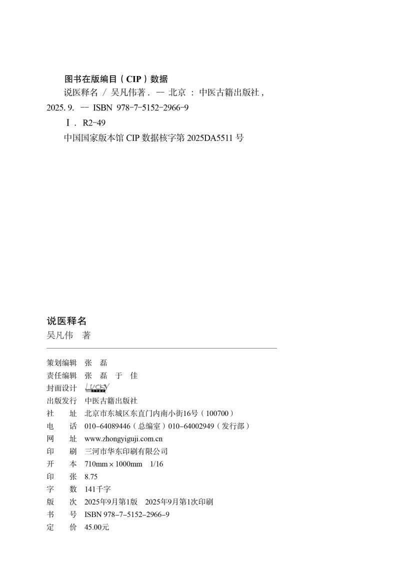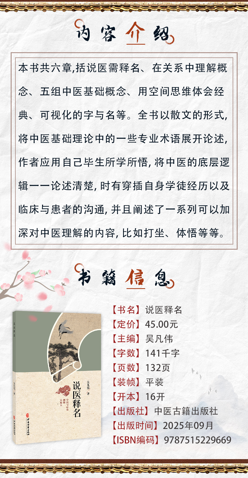 说医释名 吴凡伟 著 说医需释名 在关系中理解概念 五组中医基础概念 用空间思维体会经典 临床医学 9787515229669中医古籍出版社