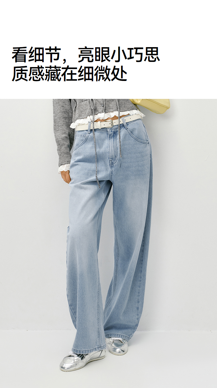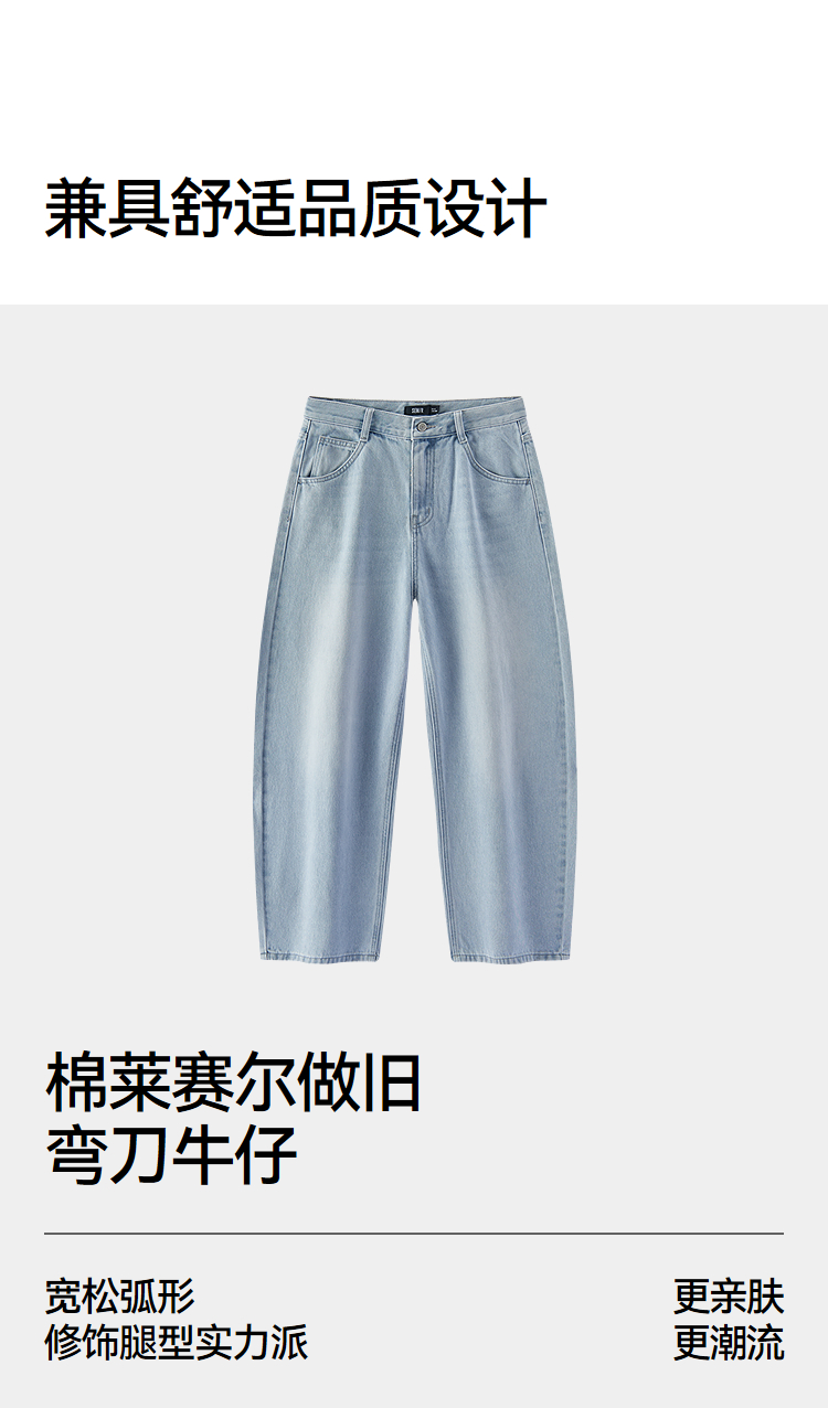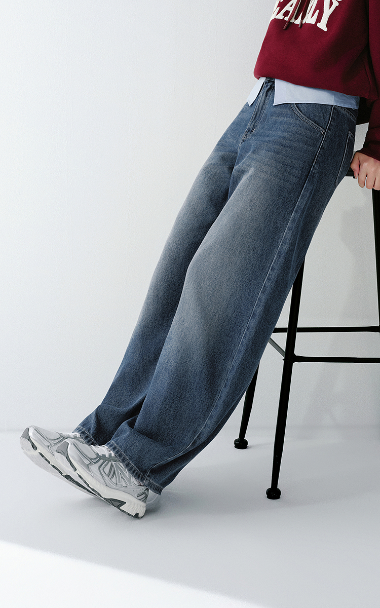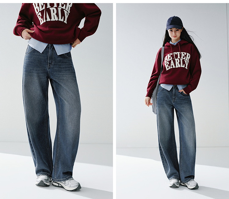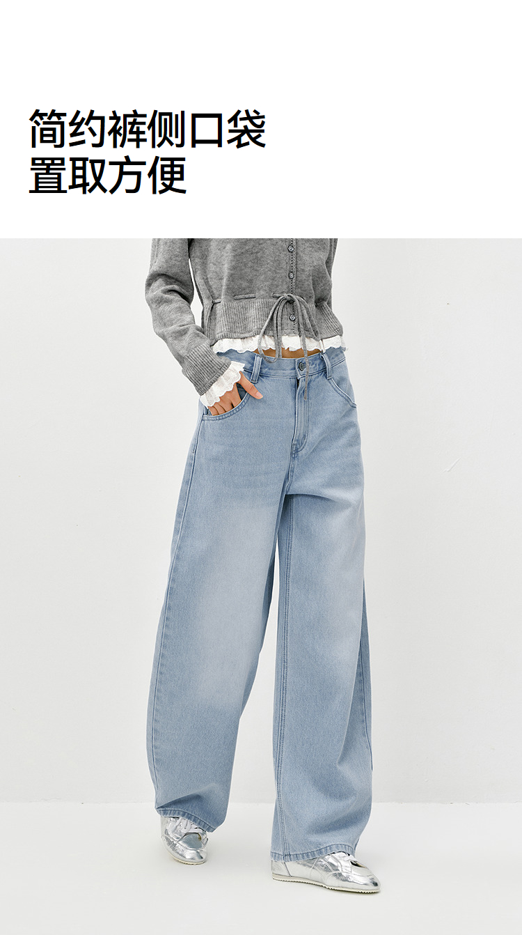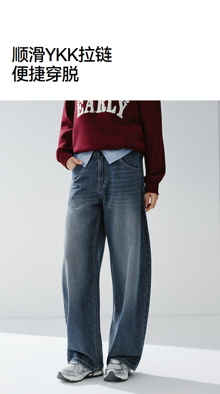 森马牛仔裤女春季做旧宽松弧形弯刀裤含莱赛尔2026新款复古风长裤