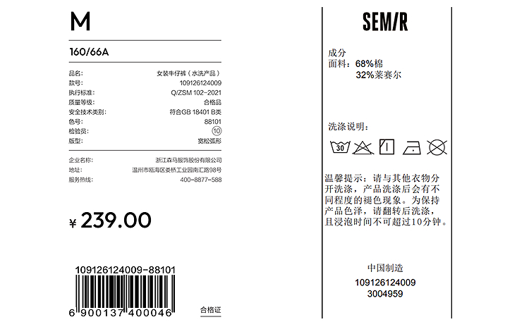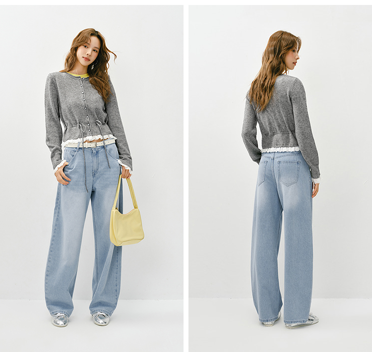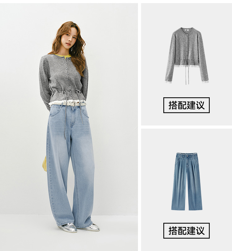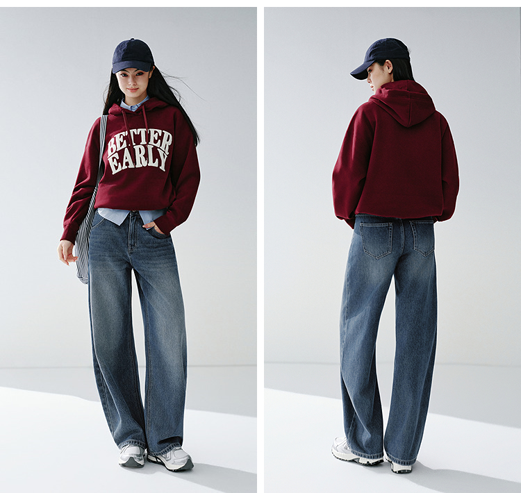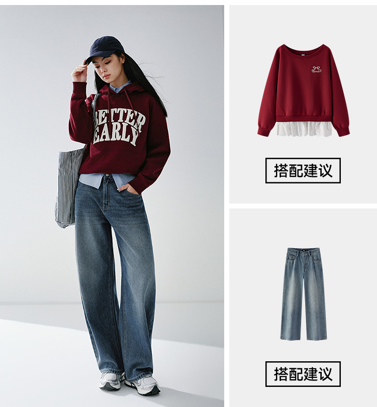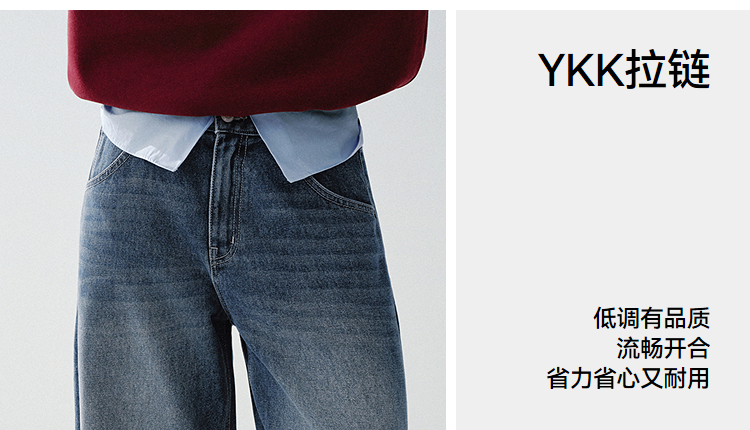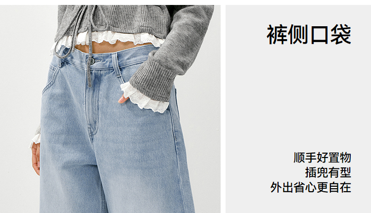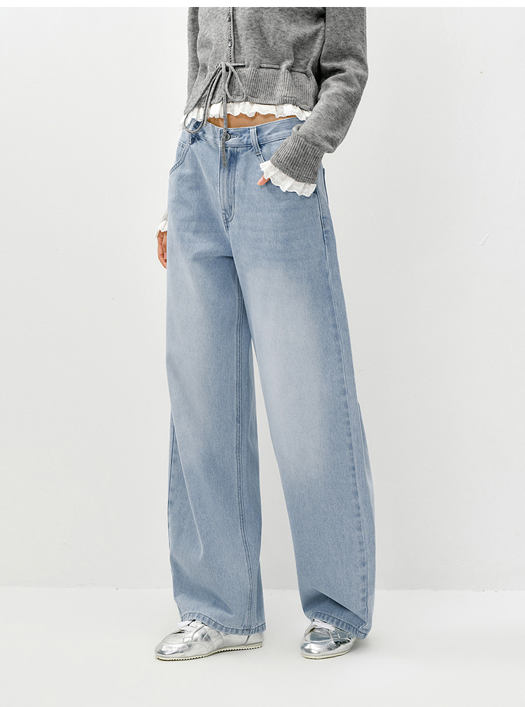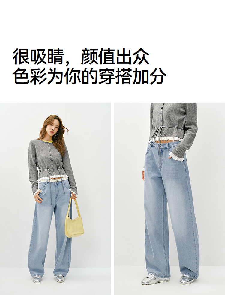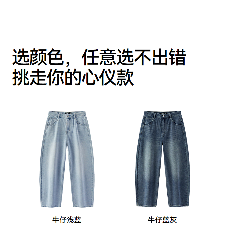 森马牛仔裤女春季做旧宽松弧形弯刀裤含莱赛尔2026新款复古风长裤