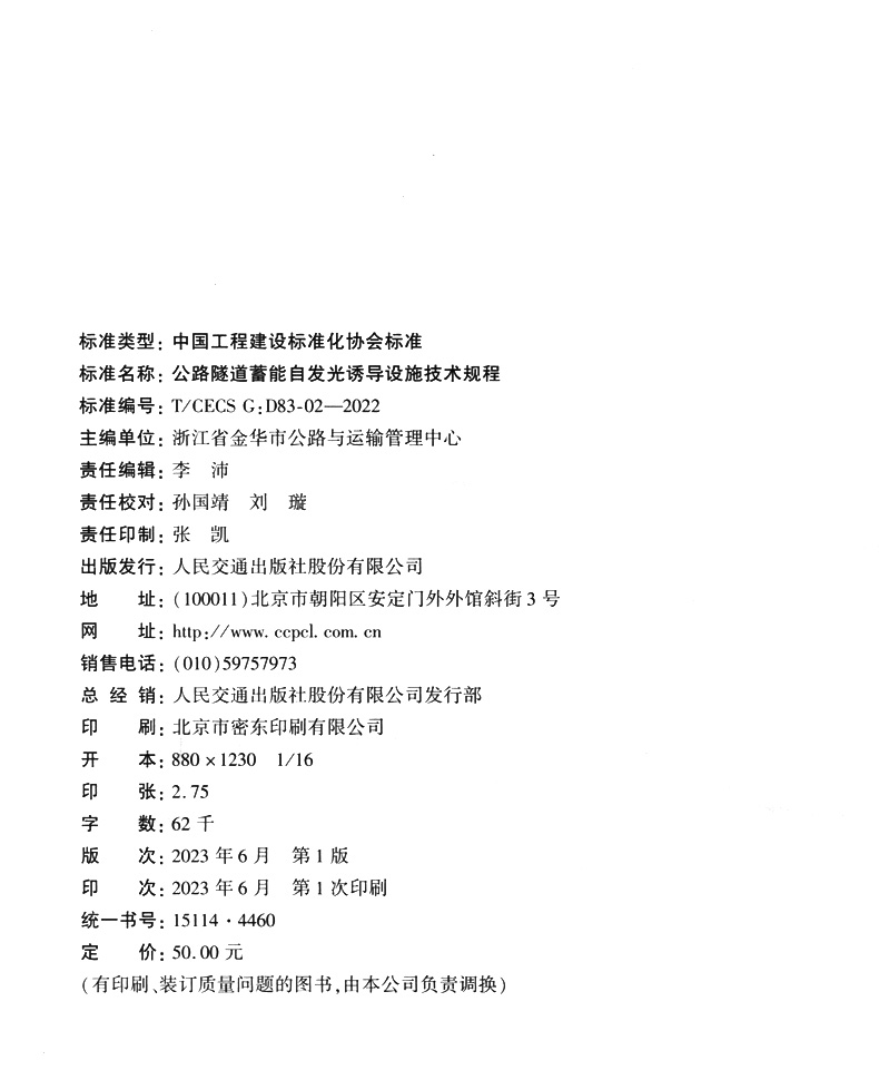 书名:公路隧道蓄能自发光诱导设施技术规程(T/CECS G:D83-02—2022)